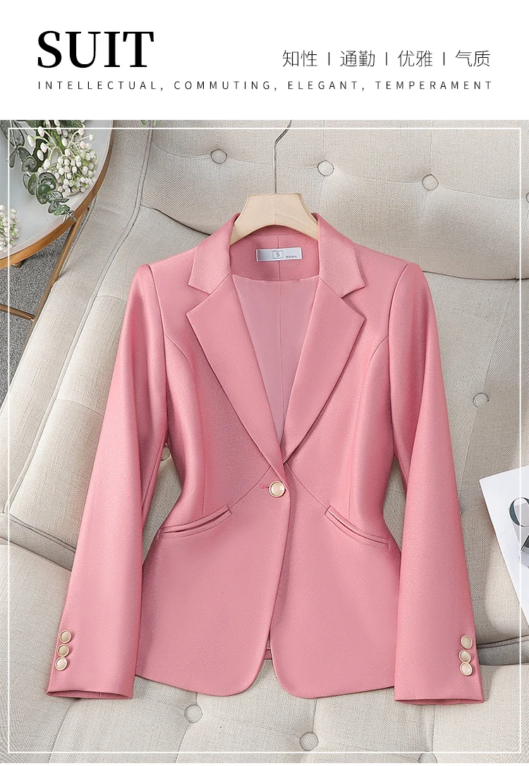 2025 High-Grade Pink Women's Slim Commuter Work Suit Jacket Professional Spring Autumn OL Style Blazer