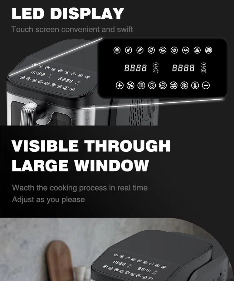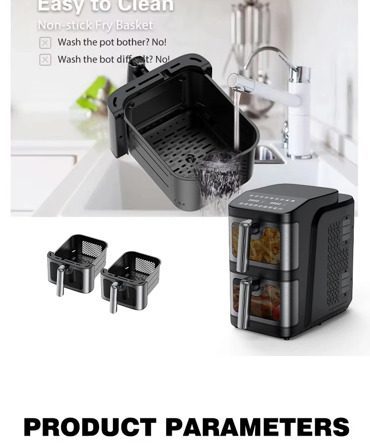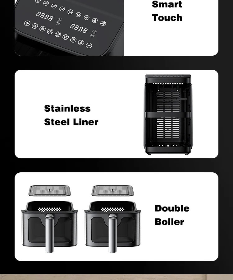 Introducing the 2025 New Design Smart Digital Air Fryer — a modern square that redefines kitchen efficiency. Crafted with a sleek, space-saving footprint, this dual-layer powerhouse brings you next-level versatility without clutter. Its smart digital controls guide you to perfectly crispy results with less oil, while energy-efficient performance helps you save on bills and reduce your footprint.