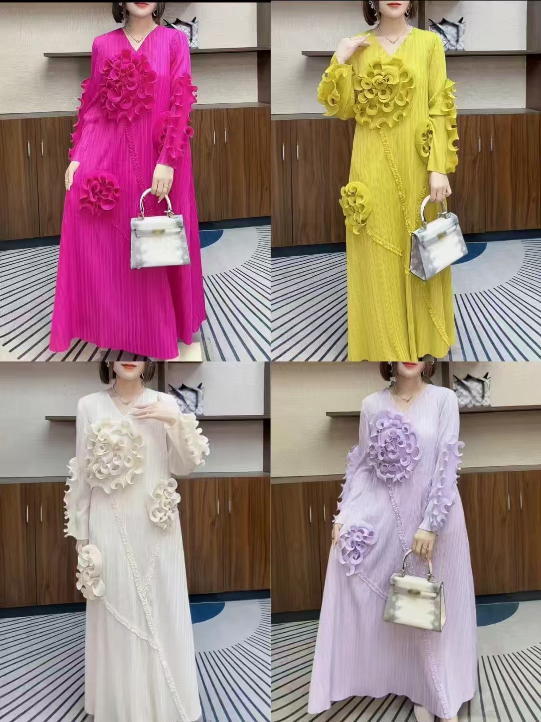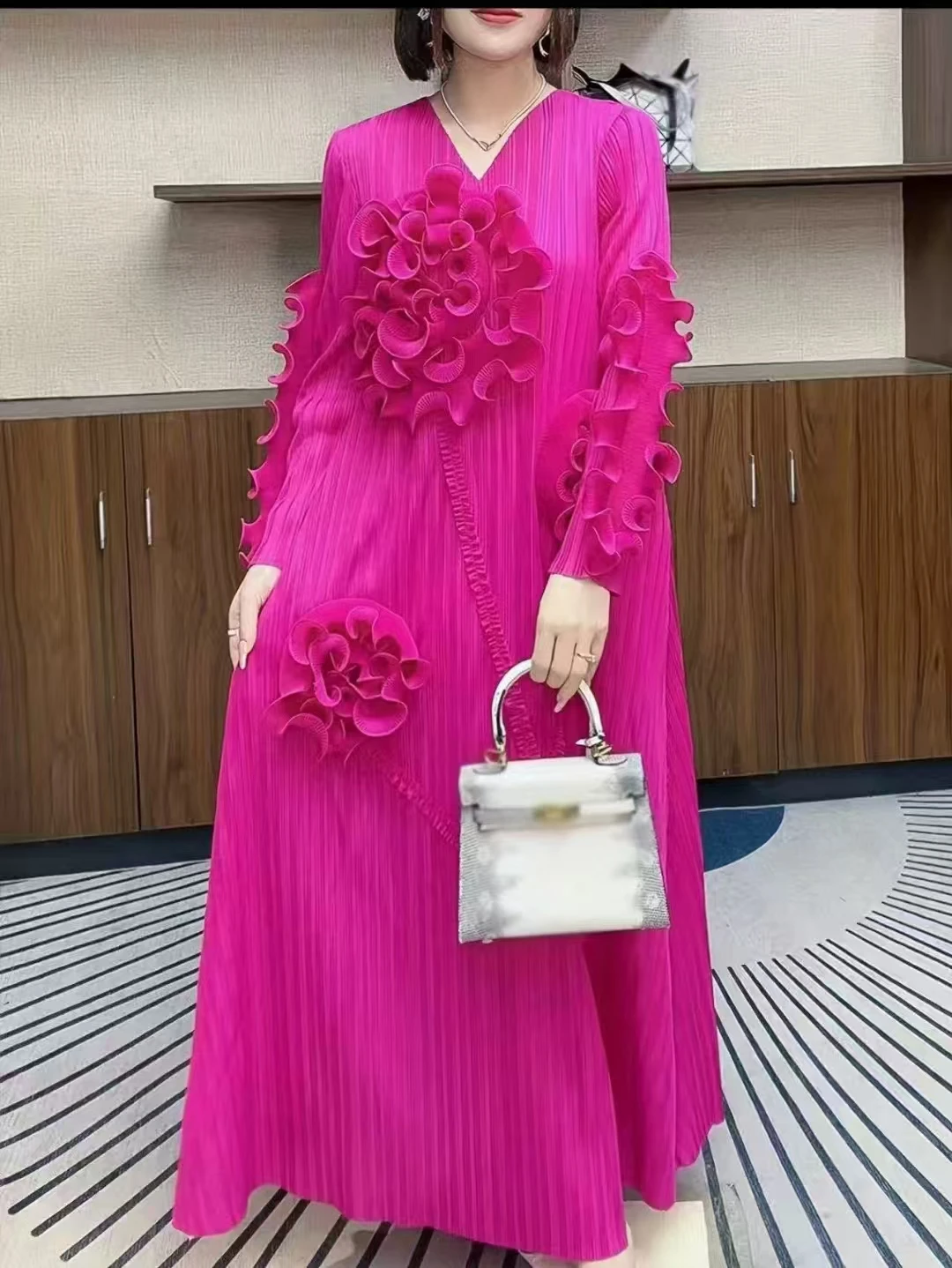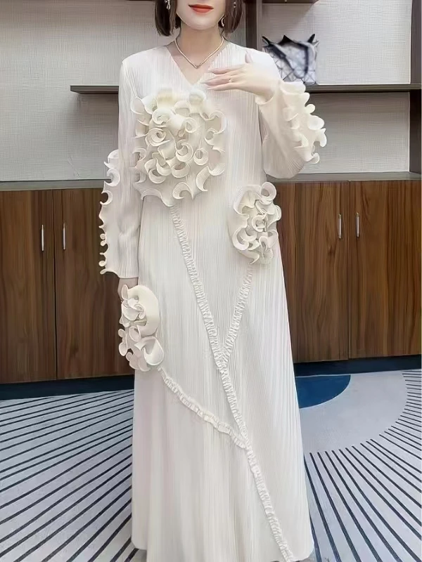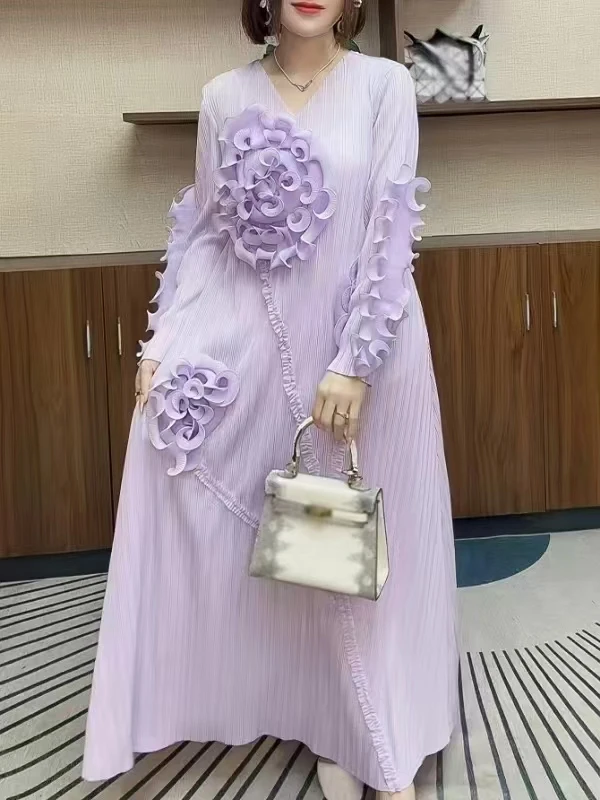 2025 New Factory Direct Sale of Handcrafted Flower, Elegant and Stylish Party V-neck Summer Ladies' Dress