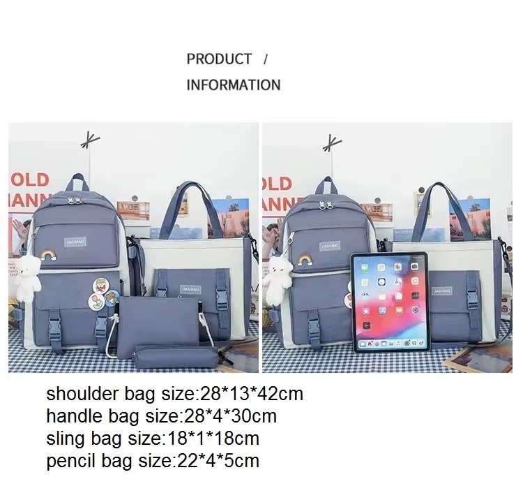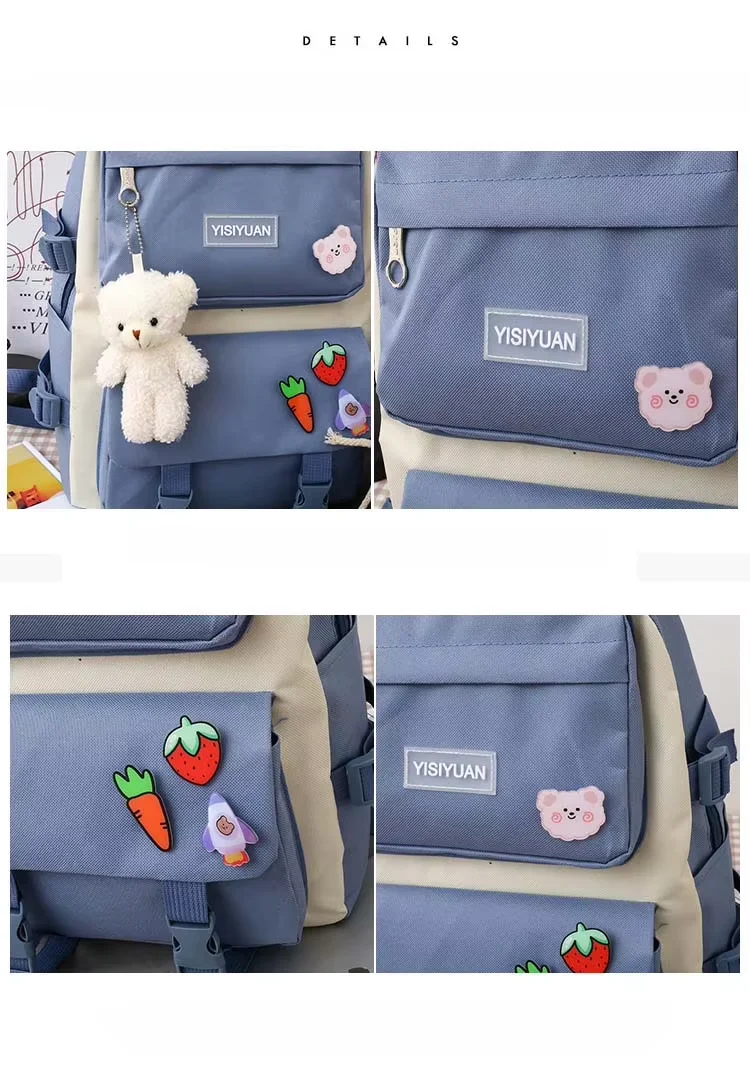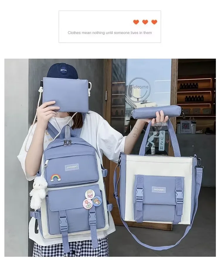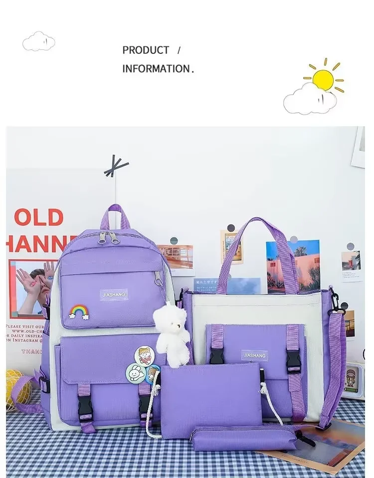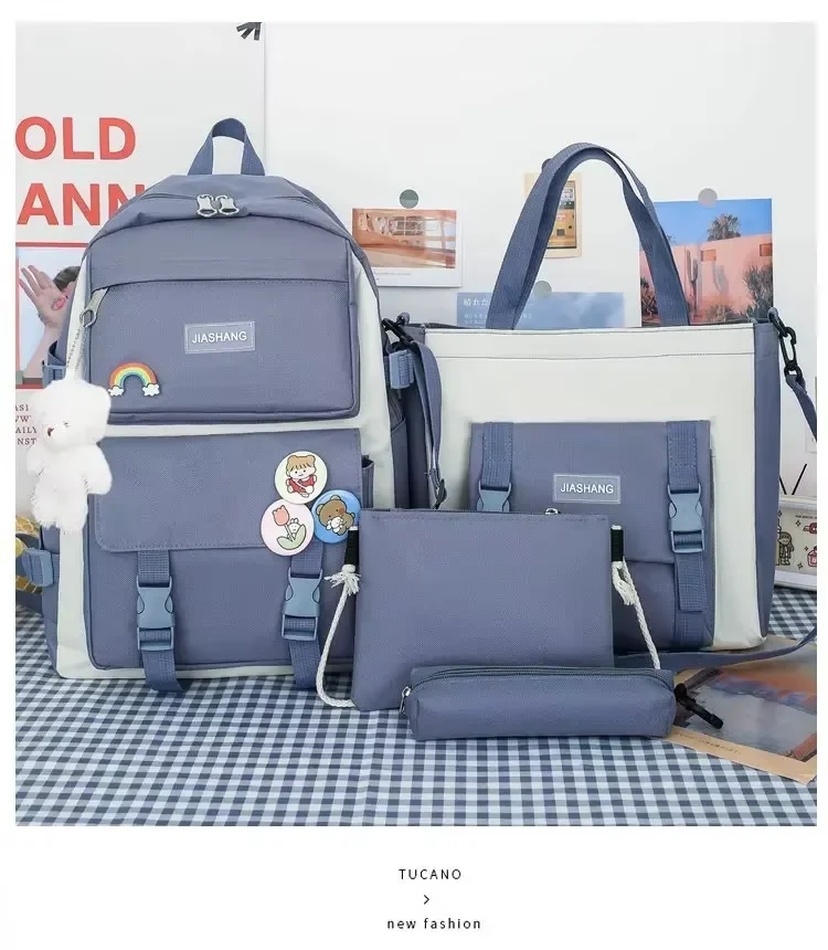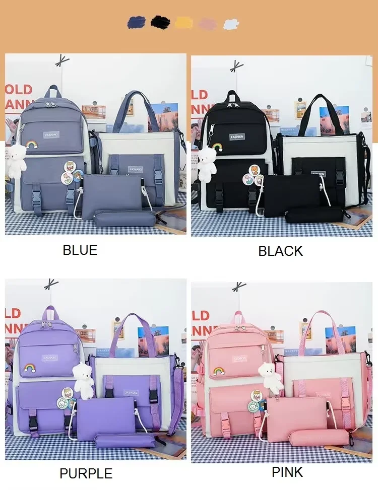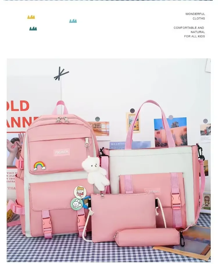 2025 New Fashion Waterproof Bag for 5 Piece Student Waterproof Bag Set Cute College Set for Girls Teenagers