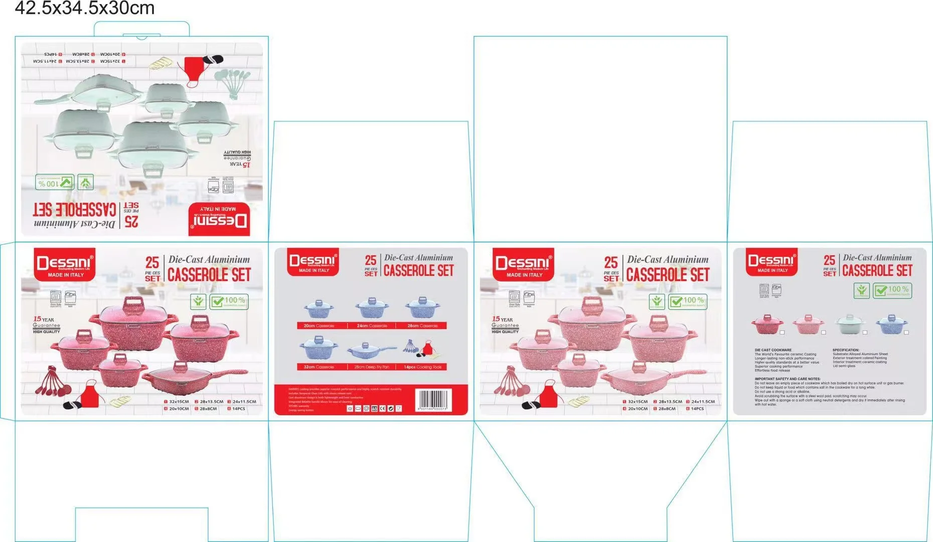 This 25-piece nonstick cookware set is made of aluminum with a multi-layer coating, ensuring eco-friendly and durable performance. It features oven-safe design, clear glass lids, and compatibility with gas cookers. The set is dishwasher safe, making cleanup effortless while offering versatile functionality for home cooking.