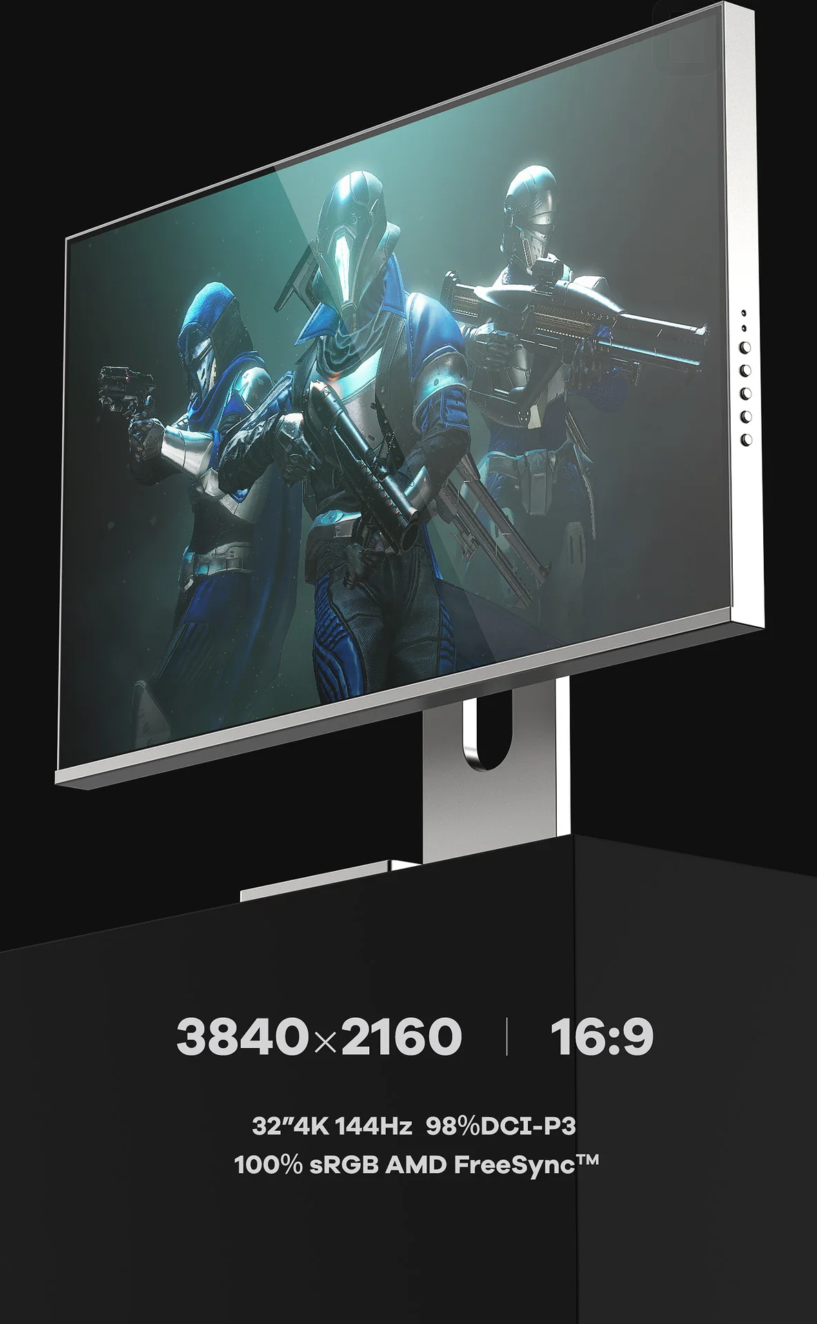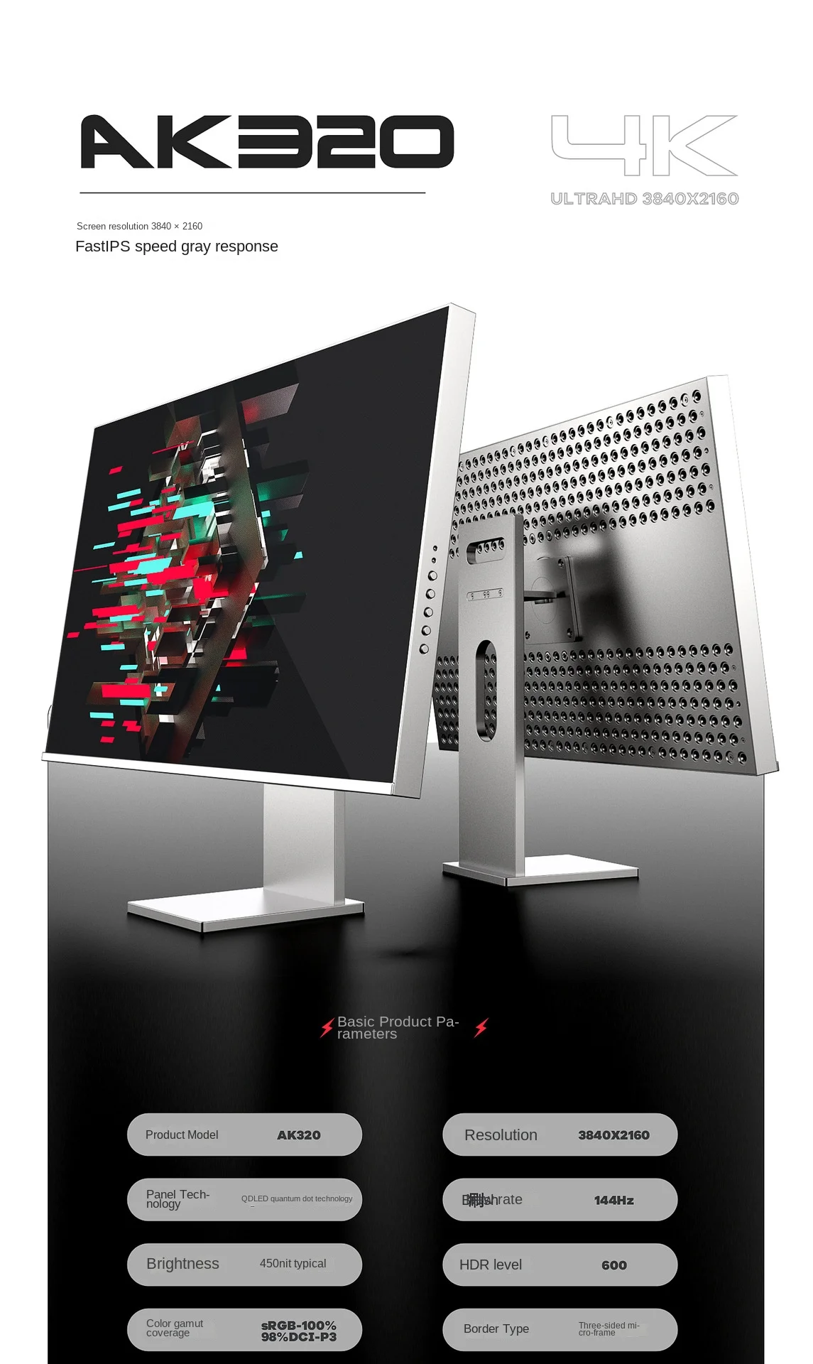 32 "4K 144Hz,HDR600,IPS hard screen, DP1.4,HDMI2.1;98 I-P3 color gamut, 1MS response, professional electronic competition display