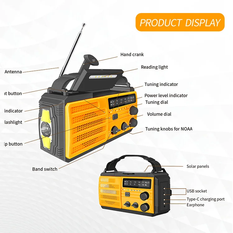 7.3 charging modes: hand-cranked power generation, type-c port charging, solar charging
