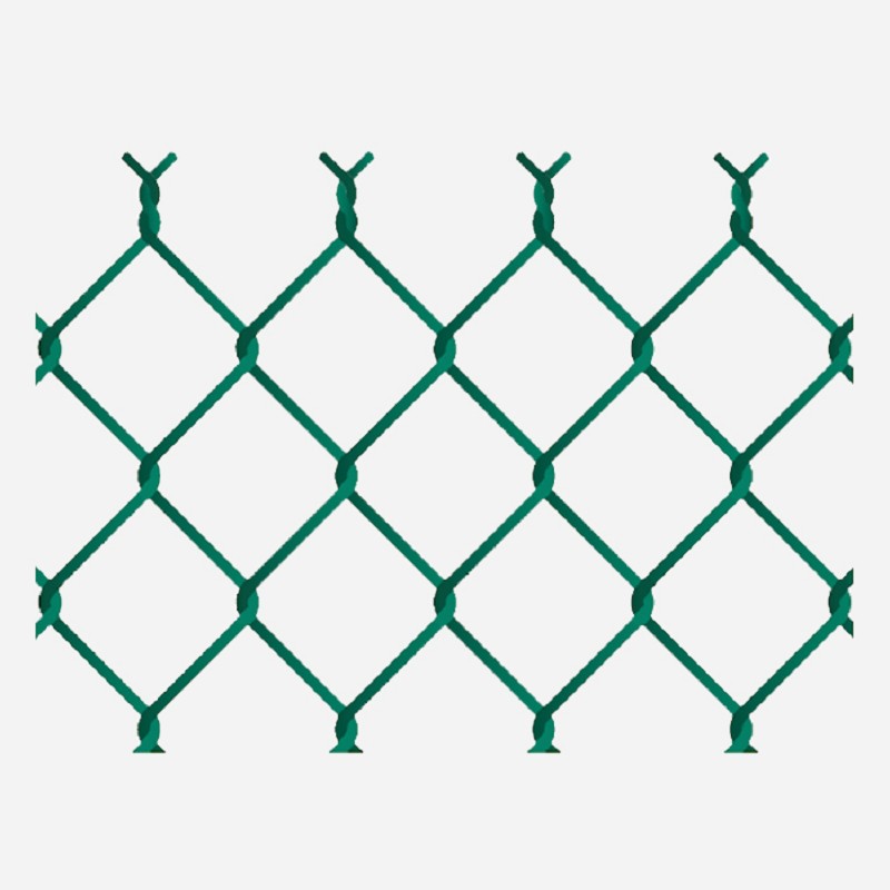 Chain link fence (also referred to as wire netting, wire mesh fence, chain wire fence, cyclone fence, hurricane fence or diamond mesh fence) is a type of woven fence usually made from galvanized or green color/black color PVC-coated steel wire. The wires run vertically and are bent into a zig-zag pattern so that each "zig" hooks with the wire immediately on one side and each "zag" with the wire immediately on the other. This forms the characteristic diamond pattern seen in this type of fence.