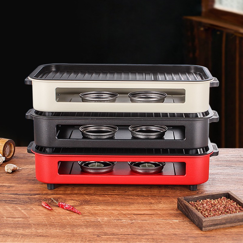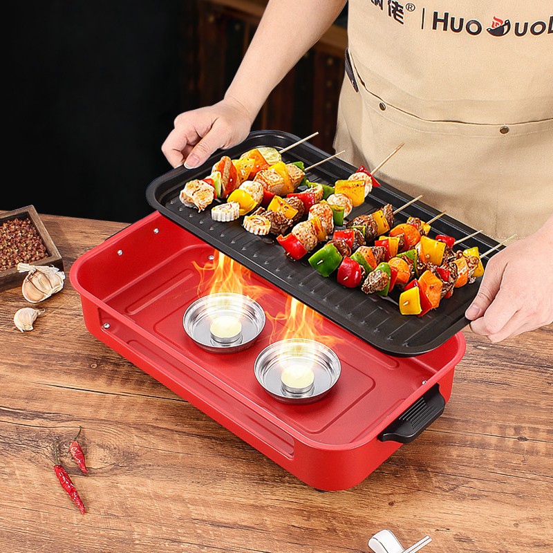 Barbecue stove insulation hot skewer stove commercial stainless steel non stick plate rectangular alcohol candle heating skewer