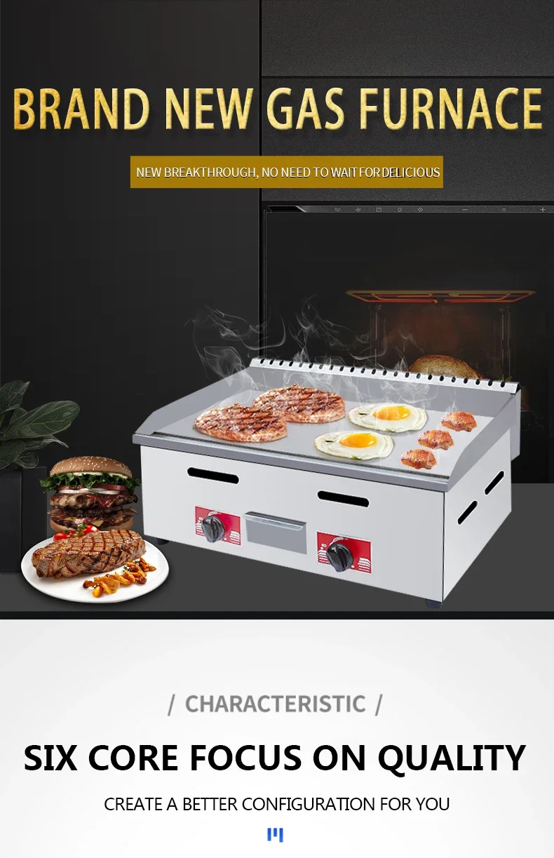 Best Selling Commercial Stainless Steel Gas Griddle Grill New Flat Plate Restaurant Catering Equipment Countertop Pancake Fryer