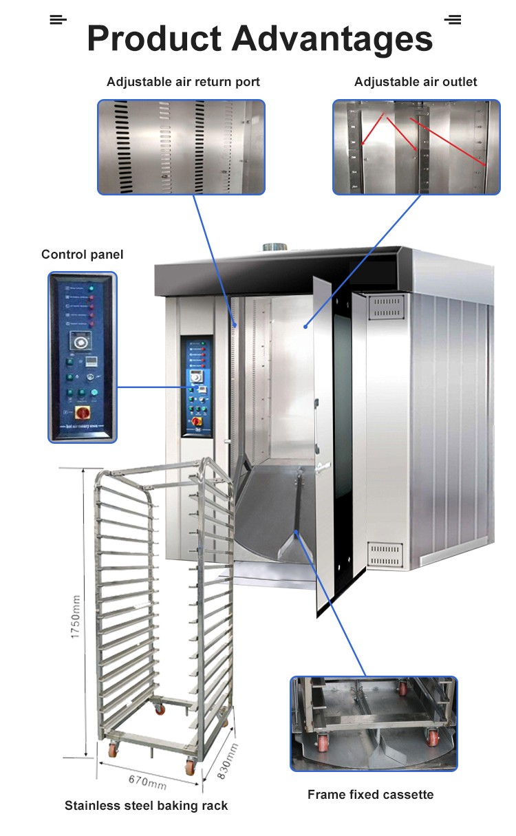 Brand New Baking Rotary Rack Oven Bread Maker Oven Automatic 16 Tray Gas/Electric/Diesel Rotary Oven for Pizza/Cake Sale Prices