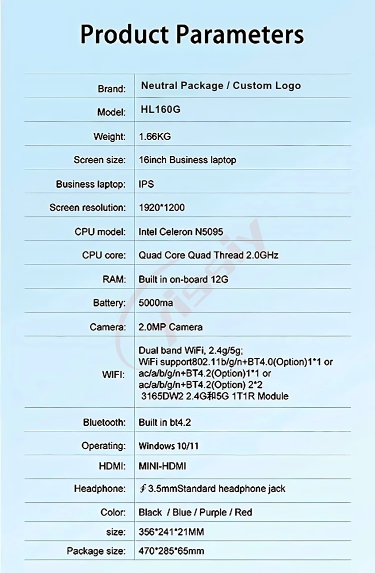 Product Name  | HL160GF High Quality Ultra Slim 16 Inch Laptops Brand New Notebook N95  |