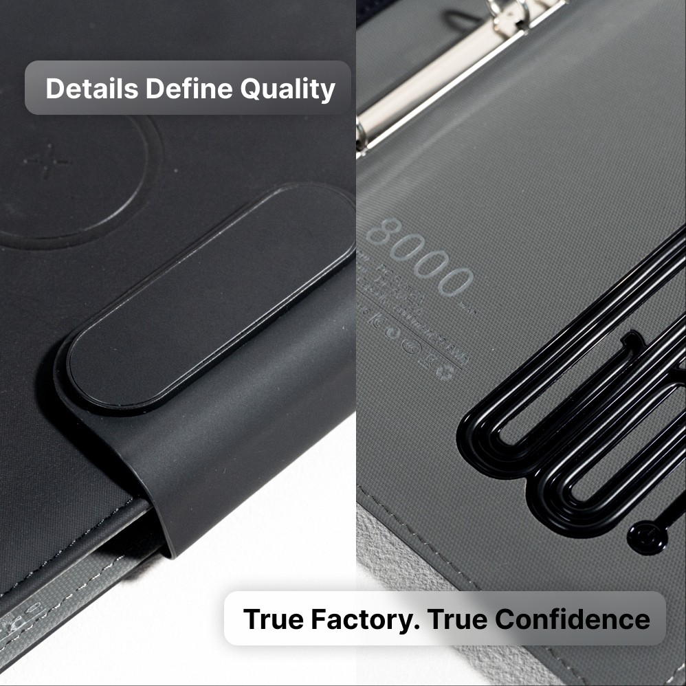 Ideal for Office, Travel, and Executive Gifting A multifunctional notebook combining power, organization, and convenience—perfect for corporate gifts, client presentations, student awards, or sales team accessories.
