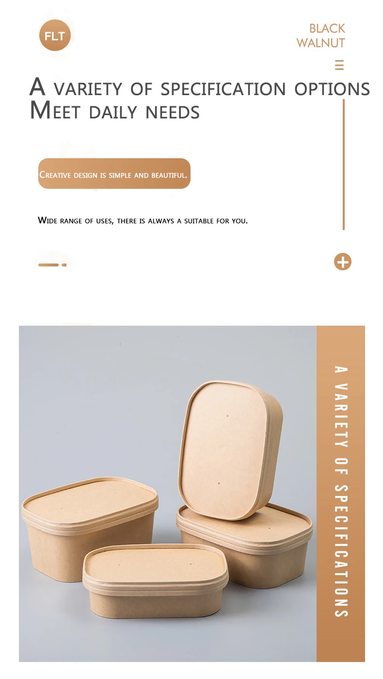 Disposable Kraft Paper square Rectangular Box Takeaway Lunch Snack Box Green Salad Packaging Bowl with Cover.