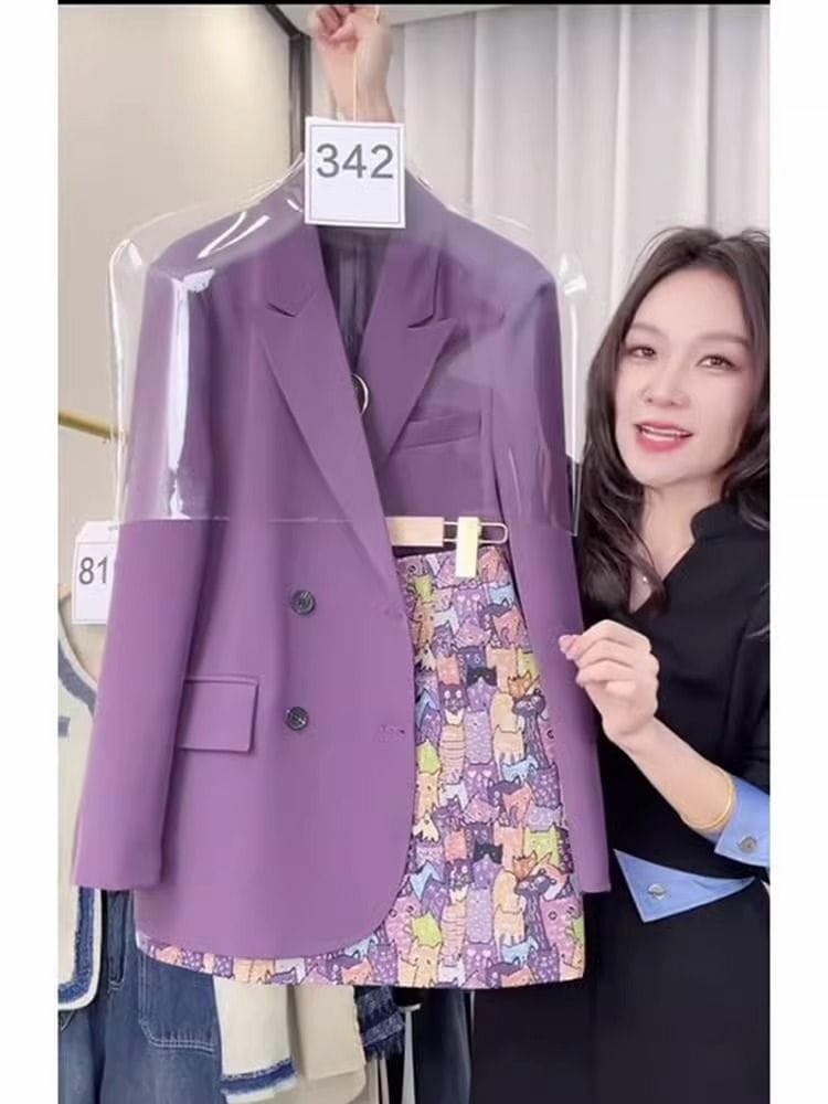 Fashionable High-End Suit Jacket/Blazer with Set Printed Skirt for Women