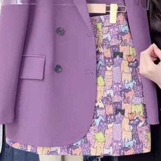 - Coordinated Printed Skirt: A matching skirt with an exclusive set print, designed to harmonize perfectly with the blazer for a cohesive, fashion-forward outfit.
