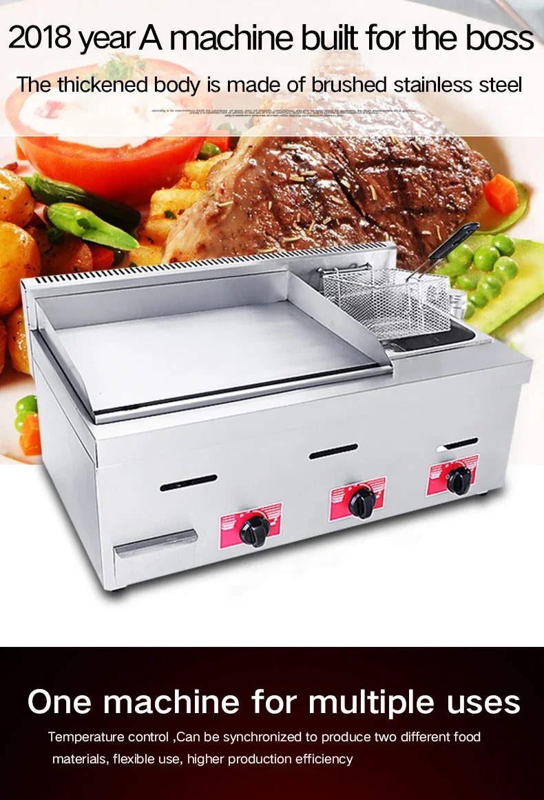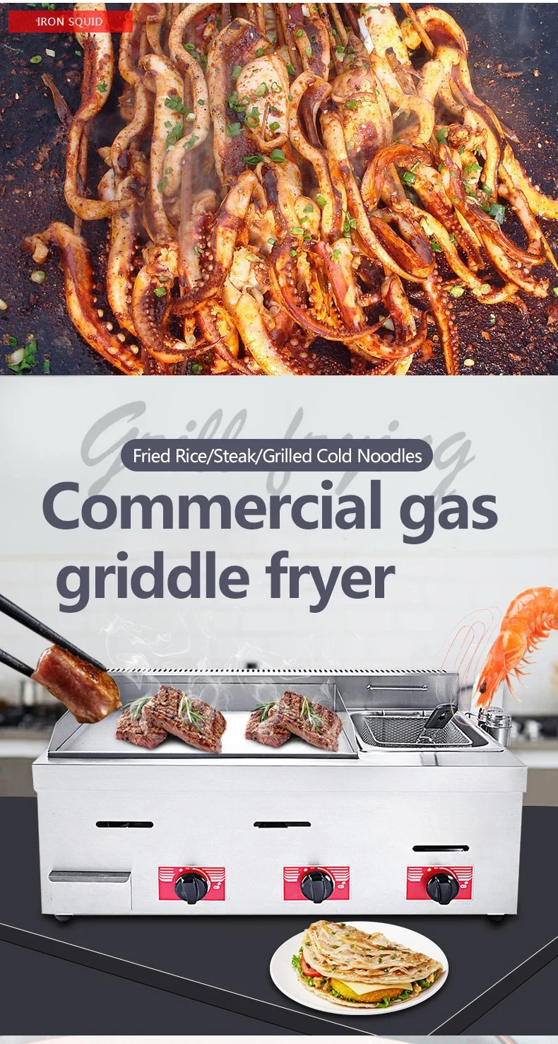 Gas Steamer Fryer Commercial Iron Plate Fried Rice Grilled Cold Noodle Stall