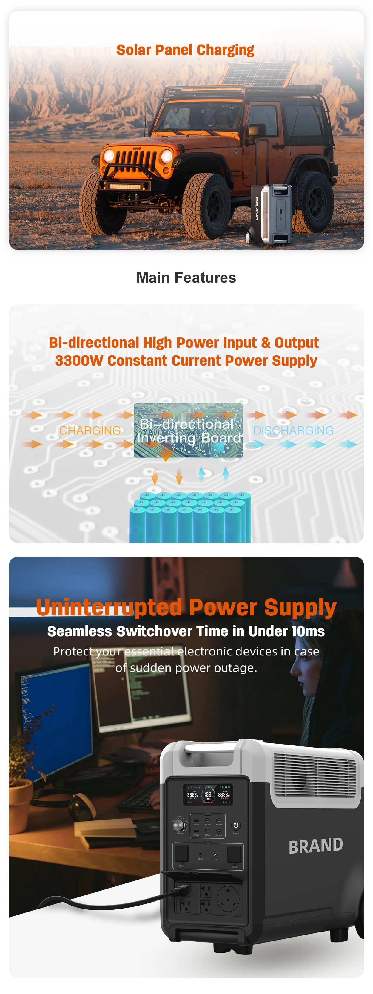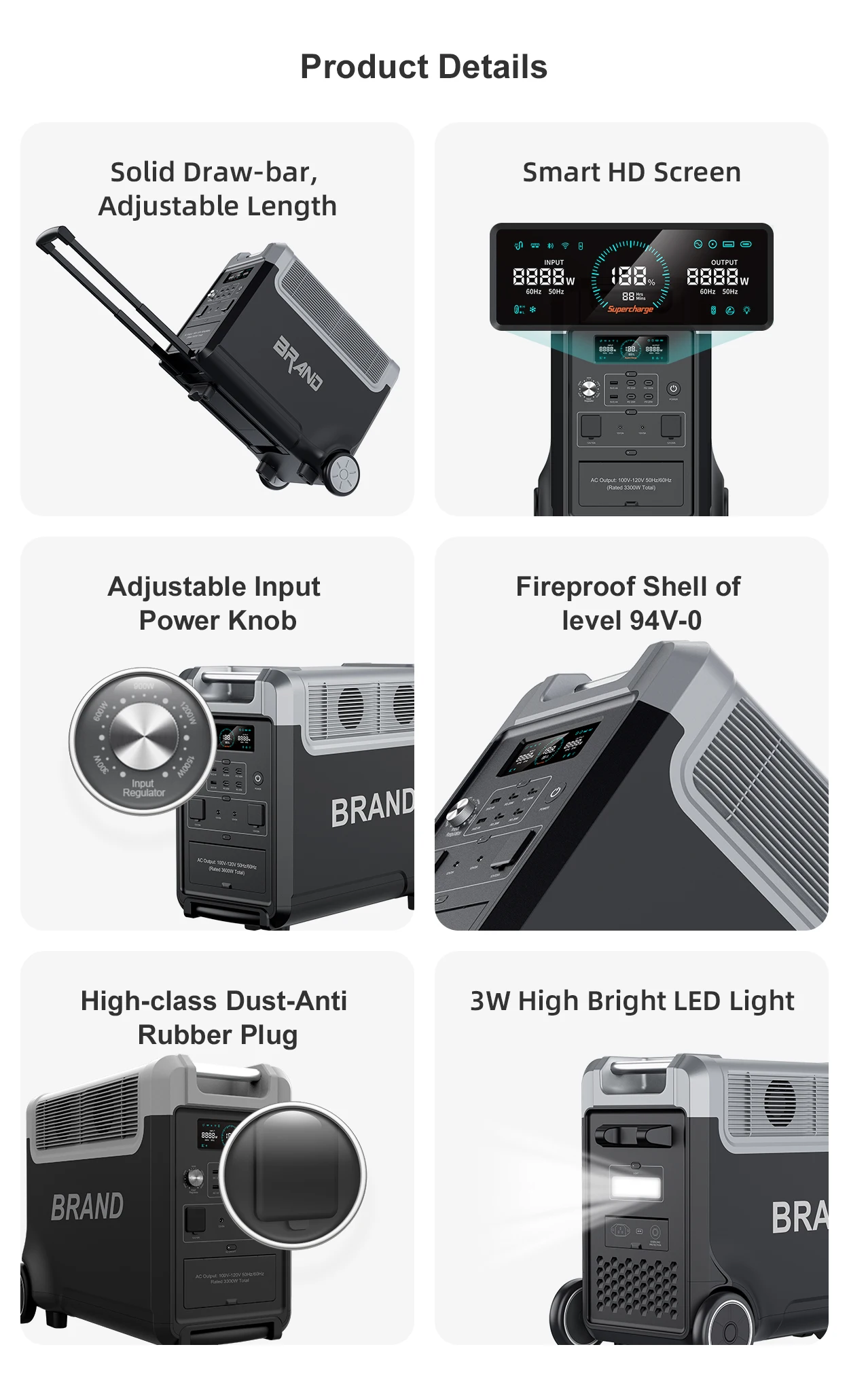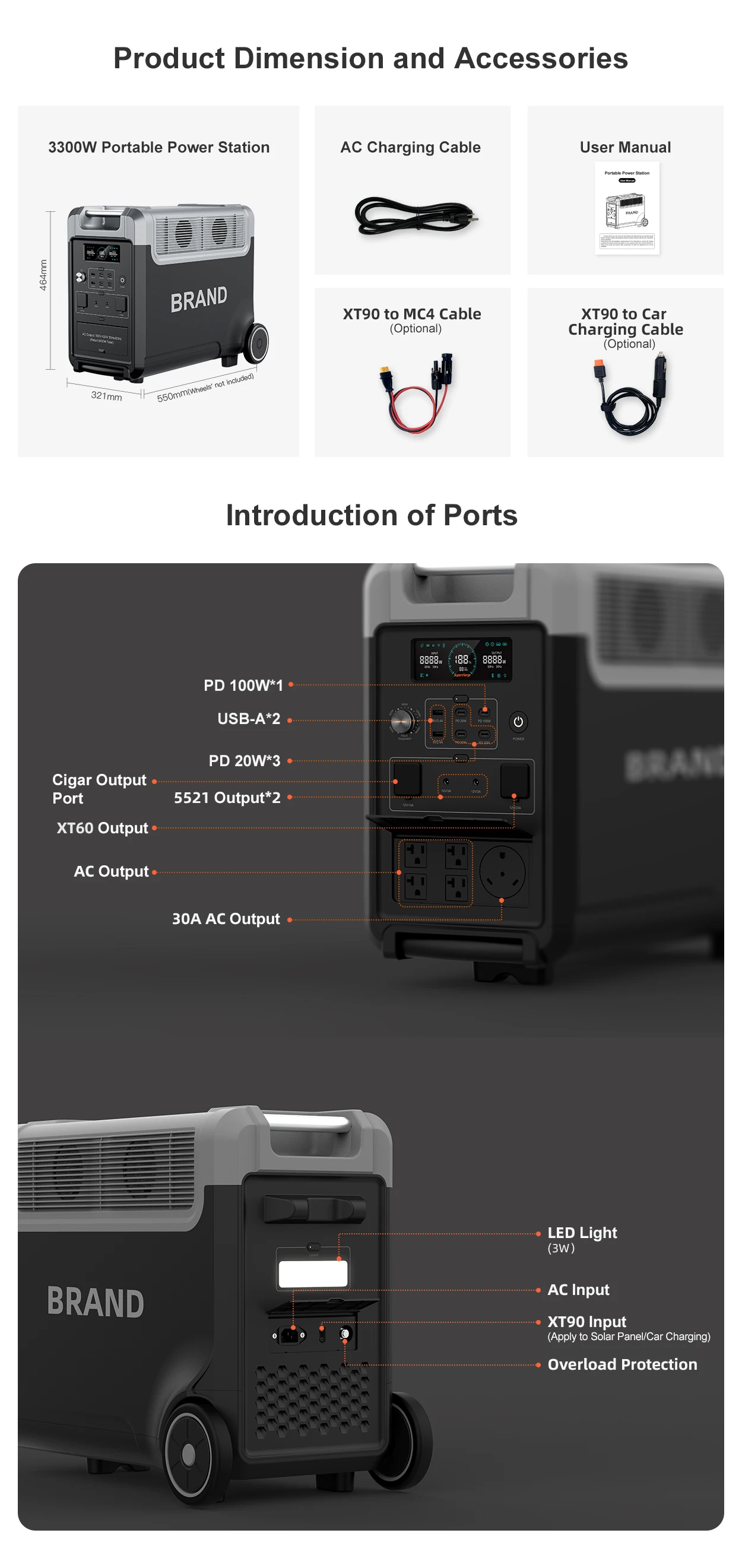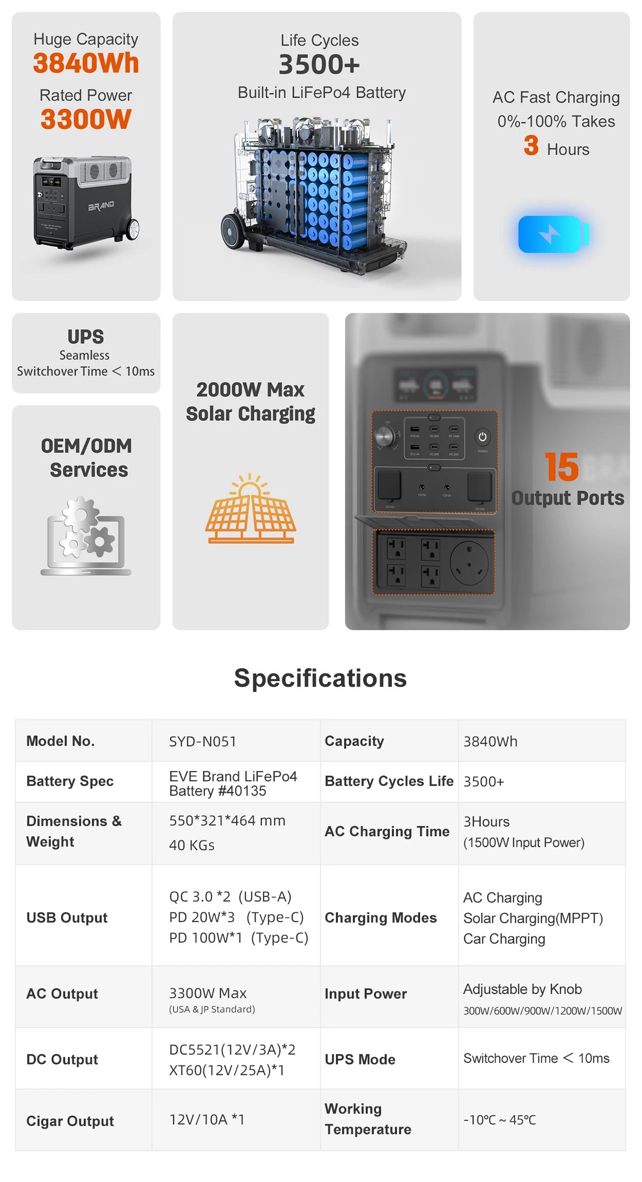 Large Capacity 3840Wh Portable Power Station 3600W 3300W with Expansion Battery