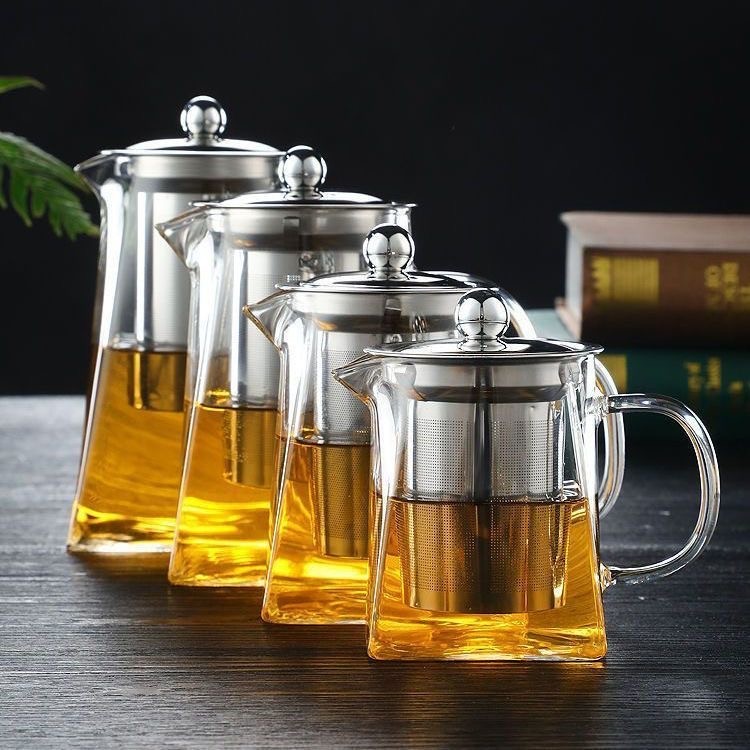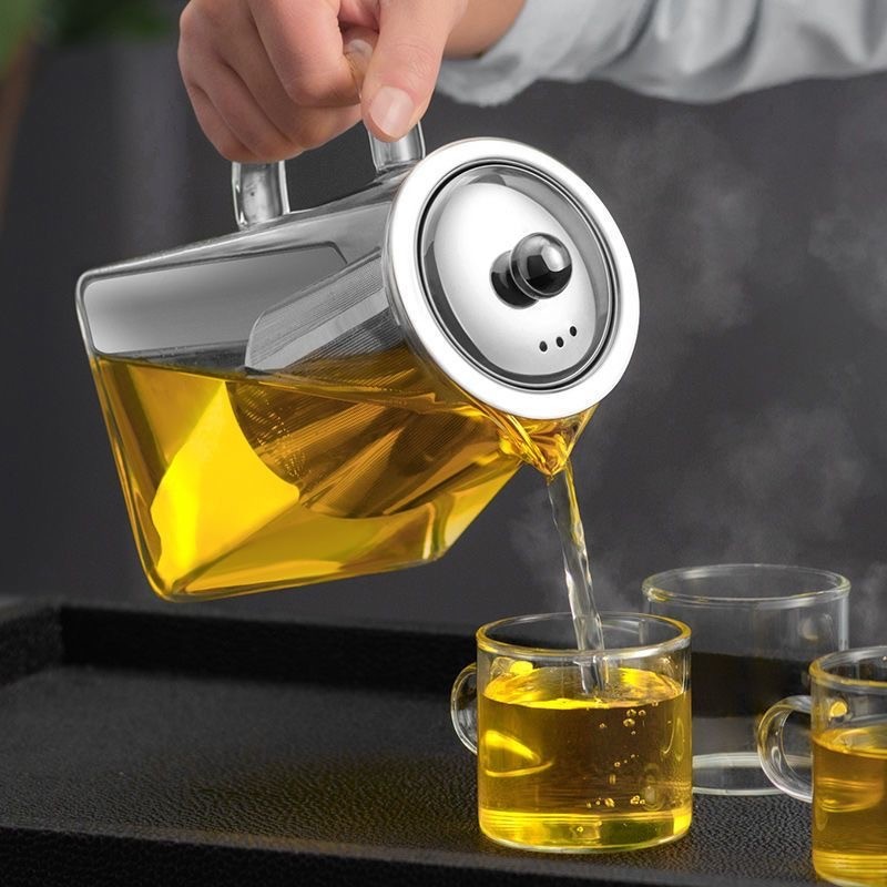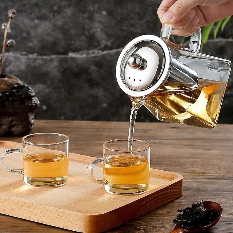 High Borosilicate Glass Teapot Set with Stainless Steel Lid & Kung Fu Tea Infuser Tea Pots & Kettles with Tea Filter