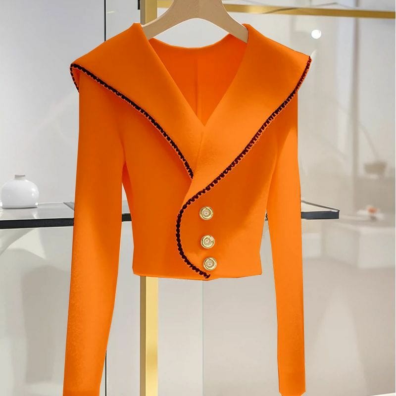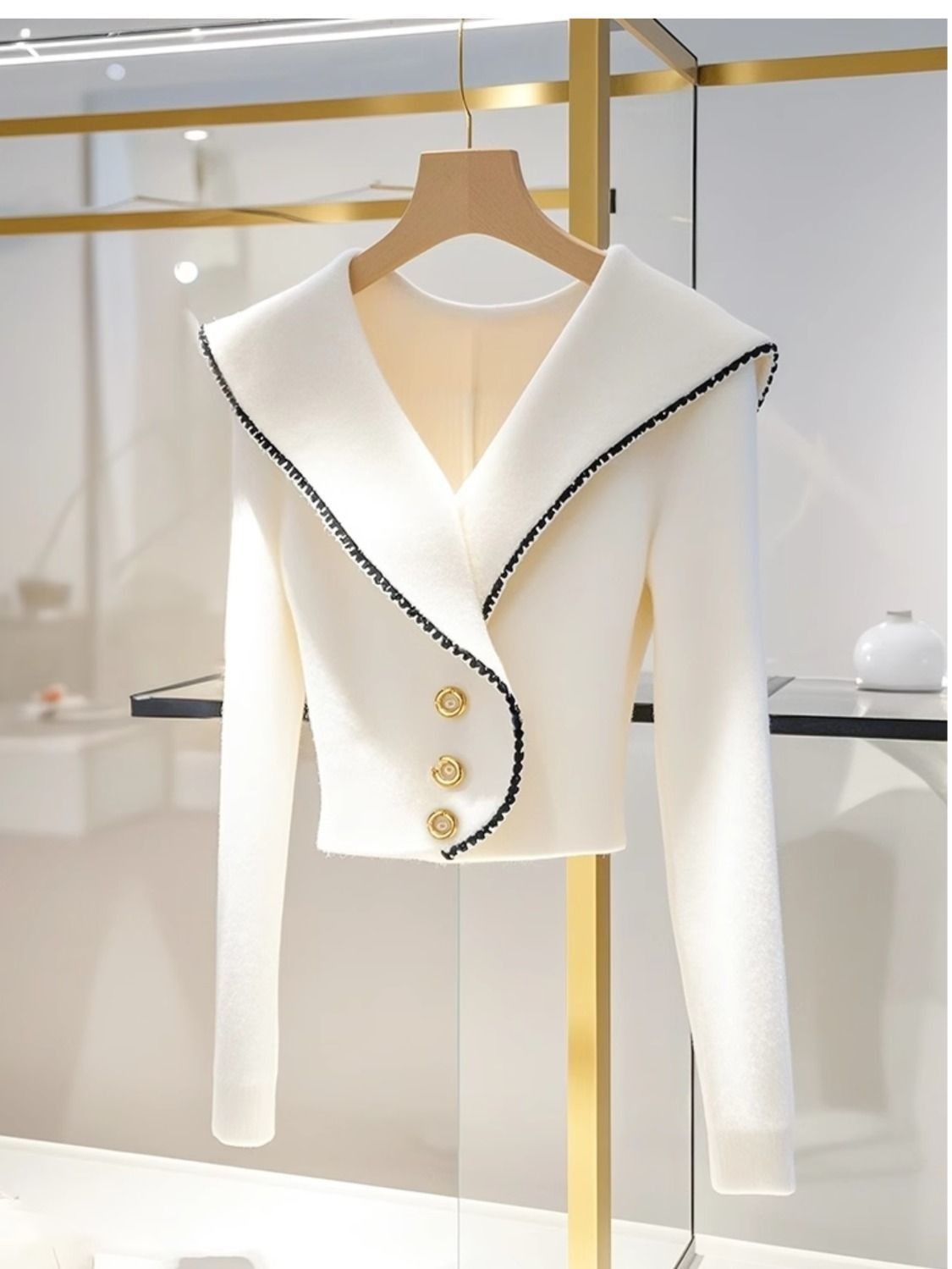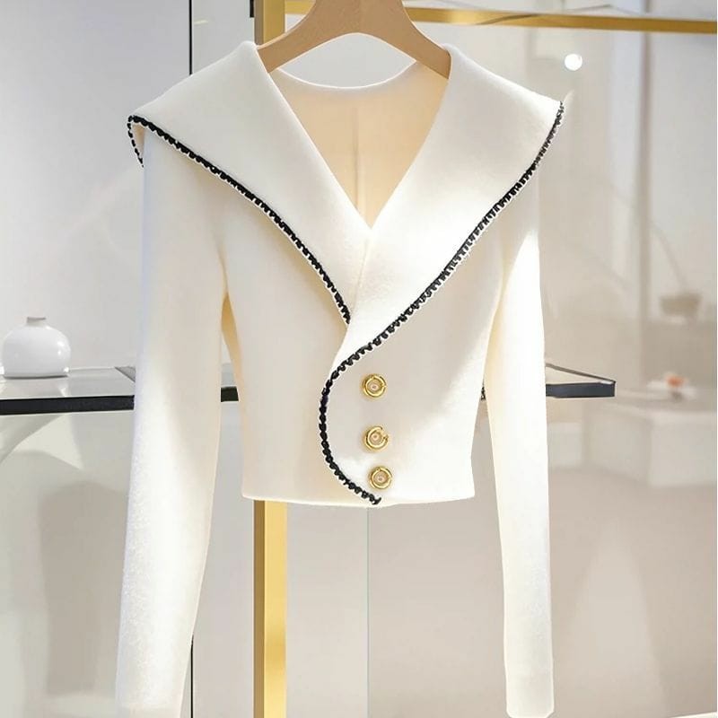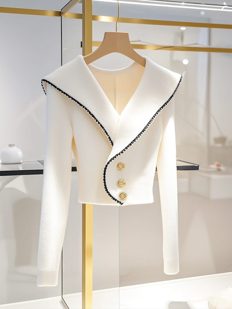High-End Knitted Knitwear — Korean Style Collar, Waist-Defining Silhouette