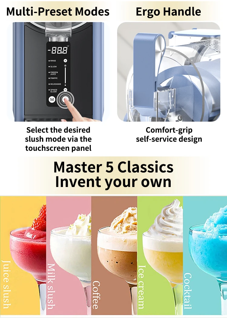 High Quality Electric Stainless Steel Home No-Ice Smoothie Frozen Dessert Maker Automatic Quick-Freeze Technology for RV Car Use