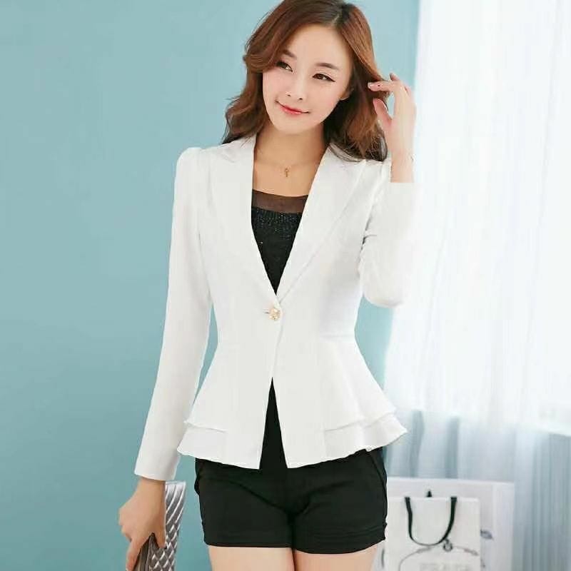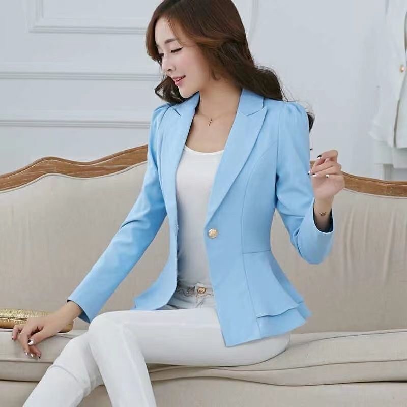 - Elevate your fall wardrobe with our Women's Autumn Suit Jacket. A long-sleeve, short, fashionable blazer crafted in a versatile Korean style that pairs seamlessly with everything from tailored trousers to denim.