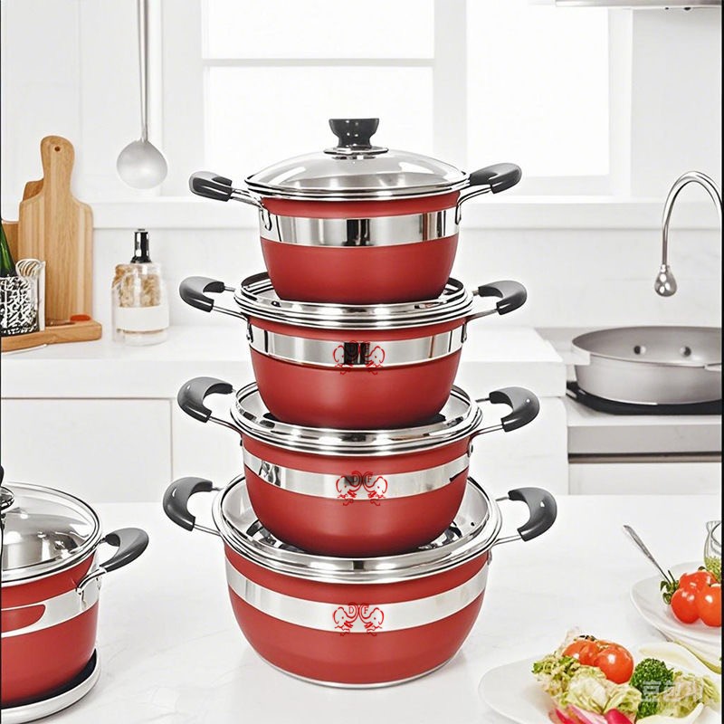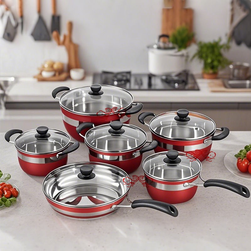 Hot Sale 12Pcs Stainless Steel Pots and Pans Luxury Cooking Nonstick Frying Pan Induction Saucepan Stock Pot Set