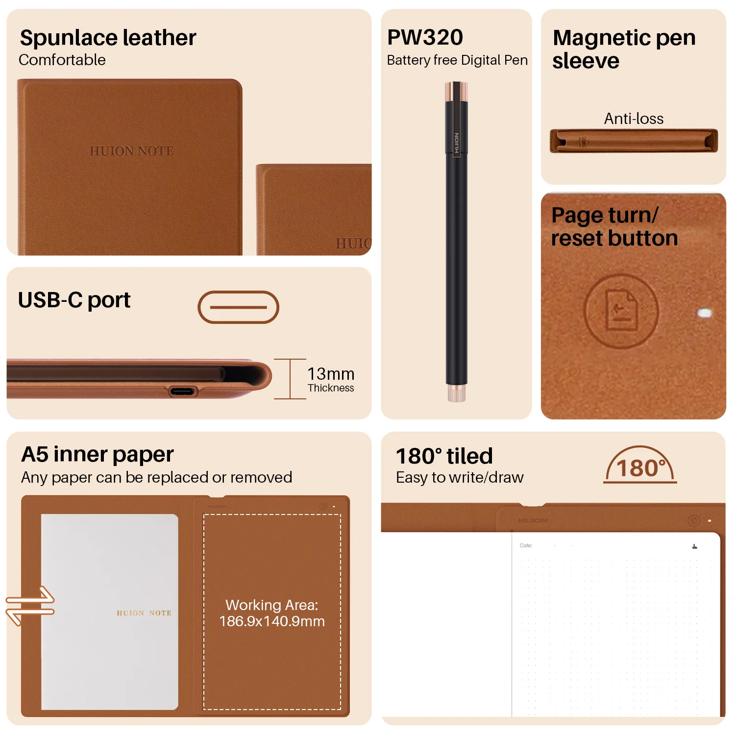 HUION note is a smart notebook and a portable graphic drawing tablet.Replace the inner pages with the panel inside the box, and connect to your PC (with Huion driver preloaded).