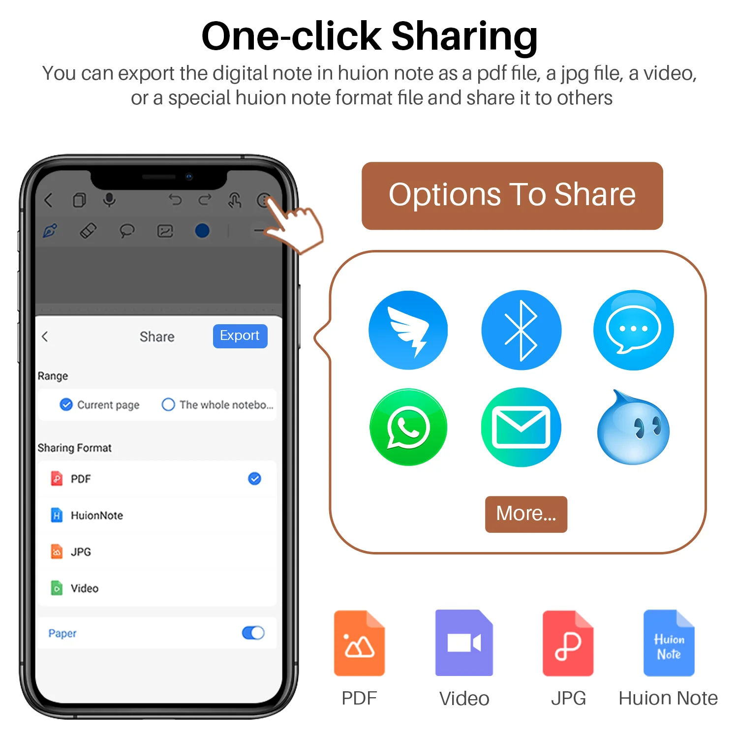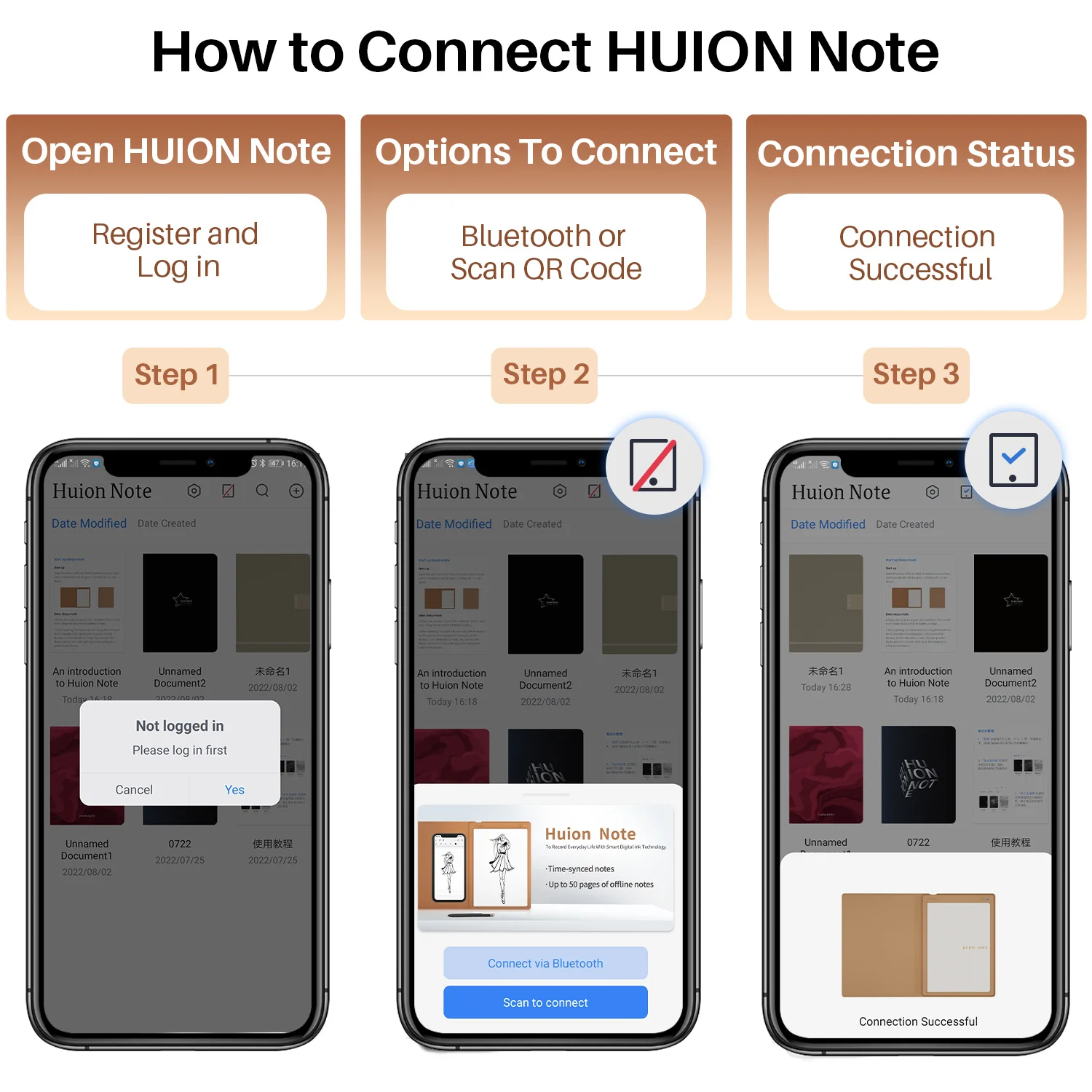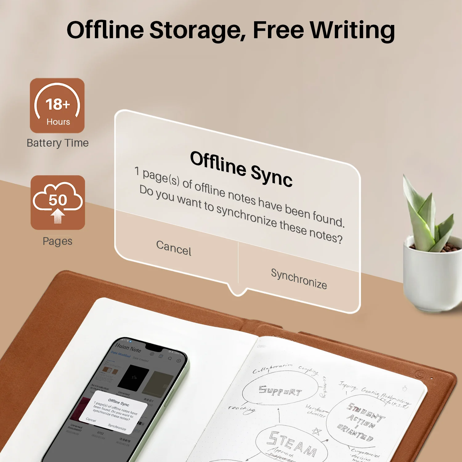 Handwriting can be converted and saved as offline digitized notes in Huion Note hardware when phone is away/ Disconnected