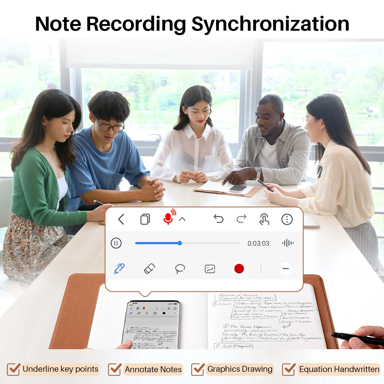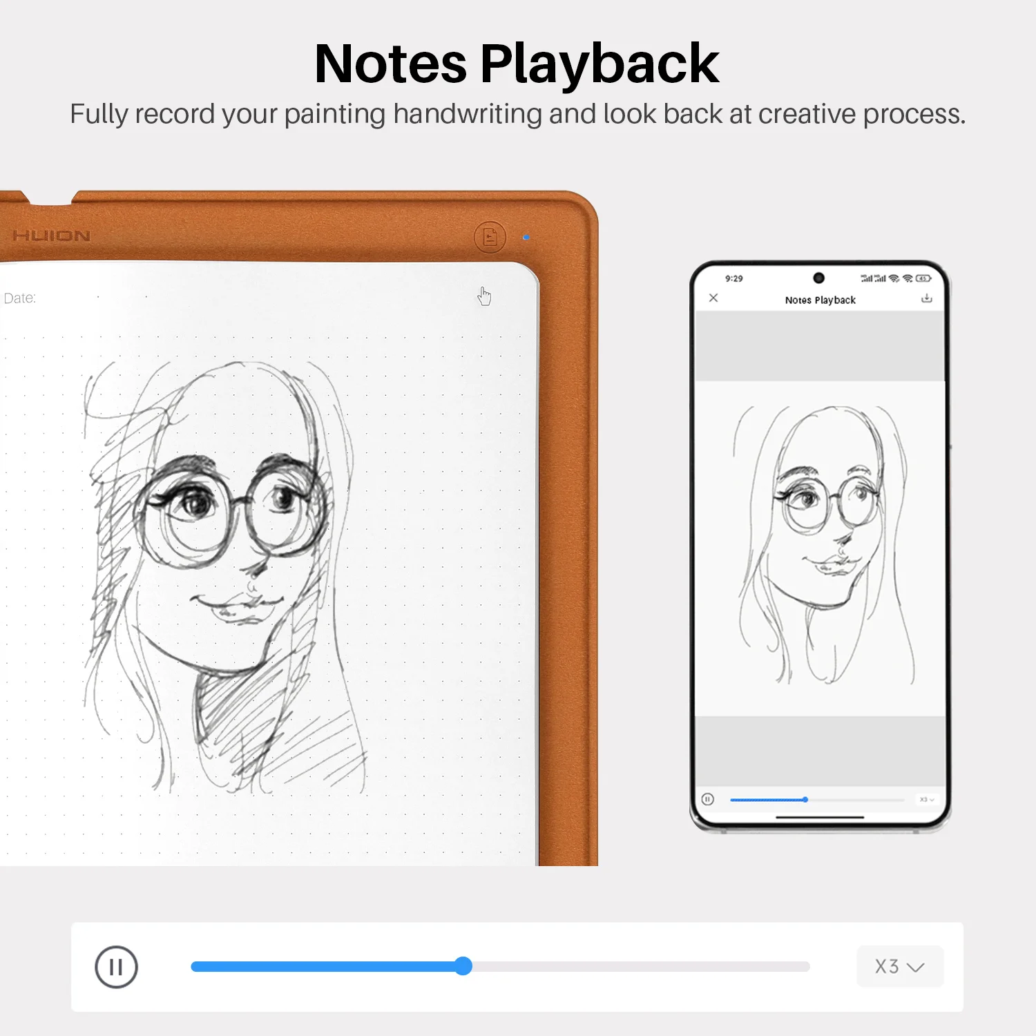Huion note enables you to record the sounds around simultaneously when you are taking notes.
