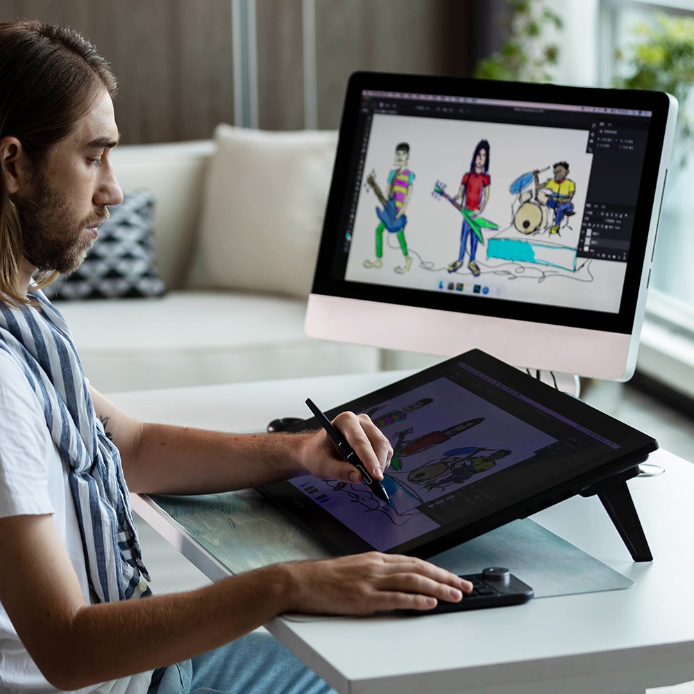 Kamvas Pro 24 (4K) is a flagship pen display with a large 23.8" screen. Enjoy every detail of your artworks on the UHD (3840×2160) screen of the Kamvas Pro 24 (4K). No need to waste time zooming in and out, opening and closing programs, now you have a large creative workspace to bring up more productivity.