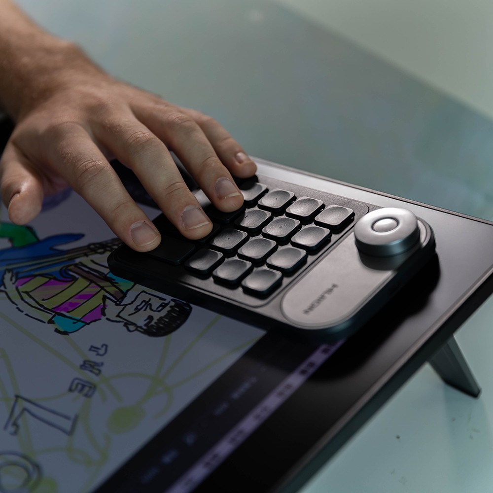 The non-shortcut keys minimalist design of Kamvas Pro 24 (4K) helps save your precious workspace. But you do not need to settle. The included Huion Mini Keydial KD100 can be fully customized to suit your workflow and maximize efficiency.