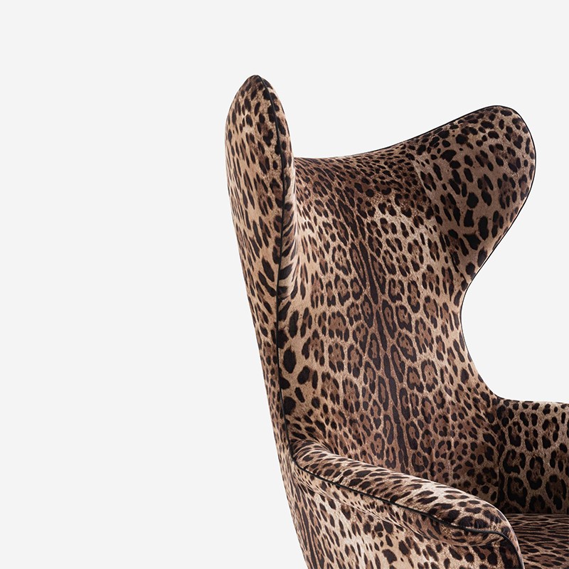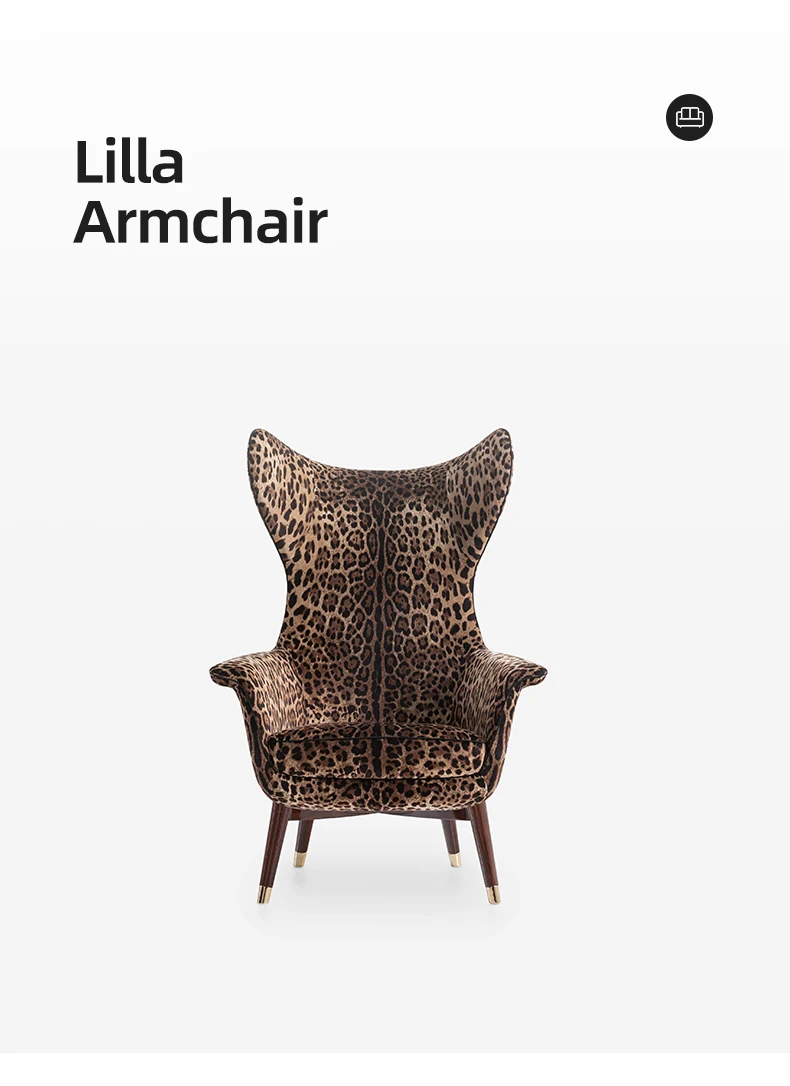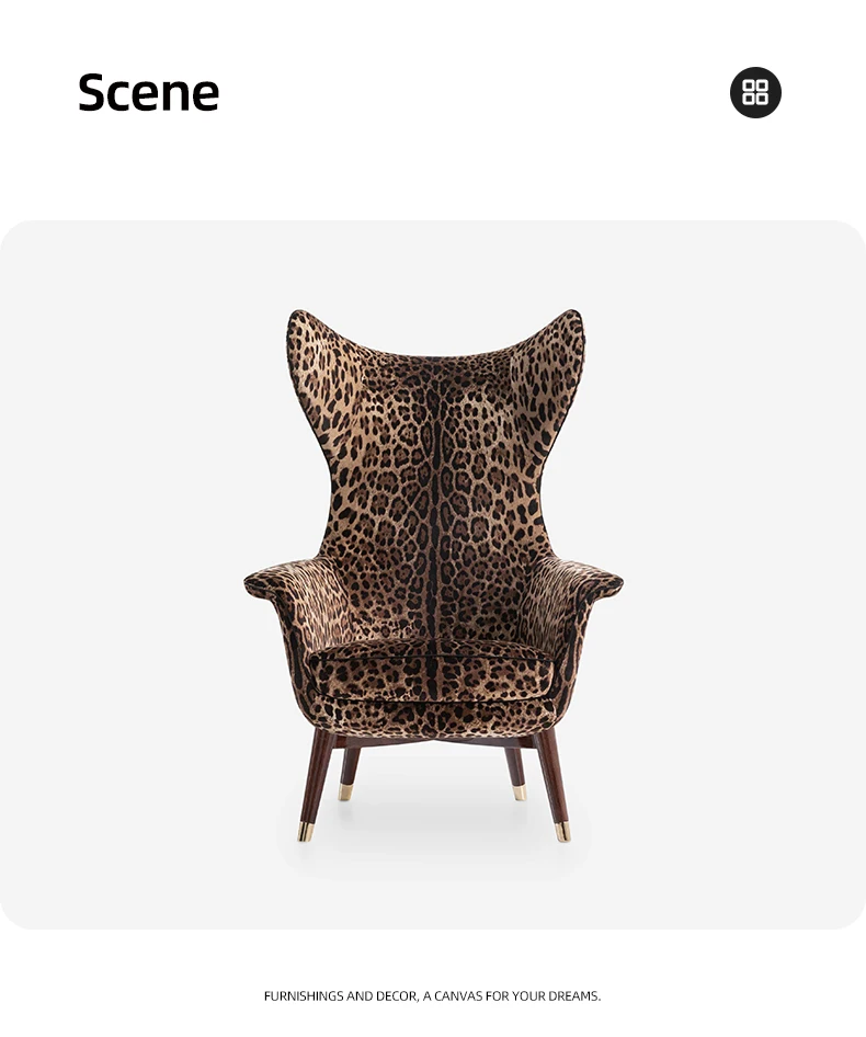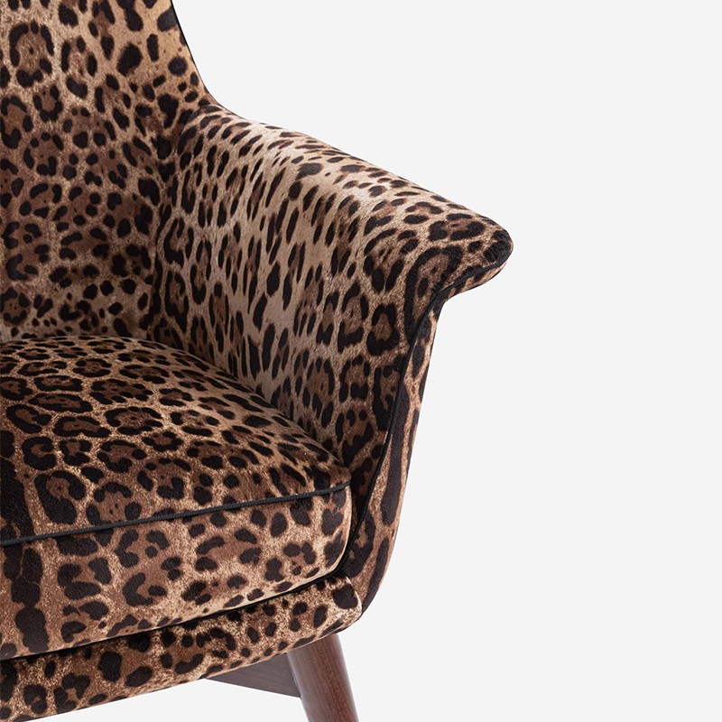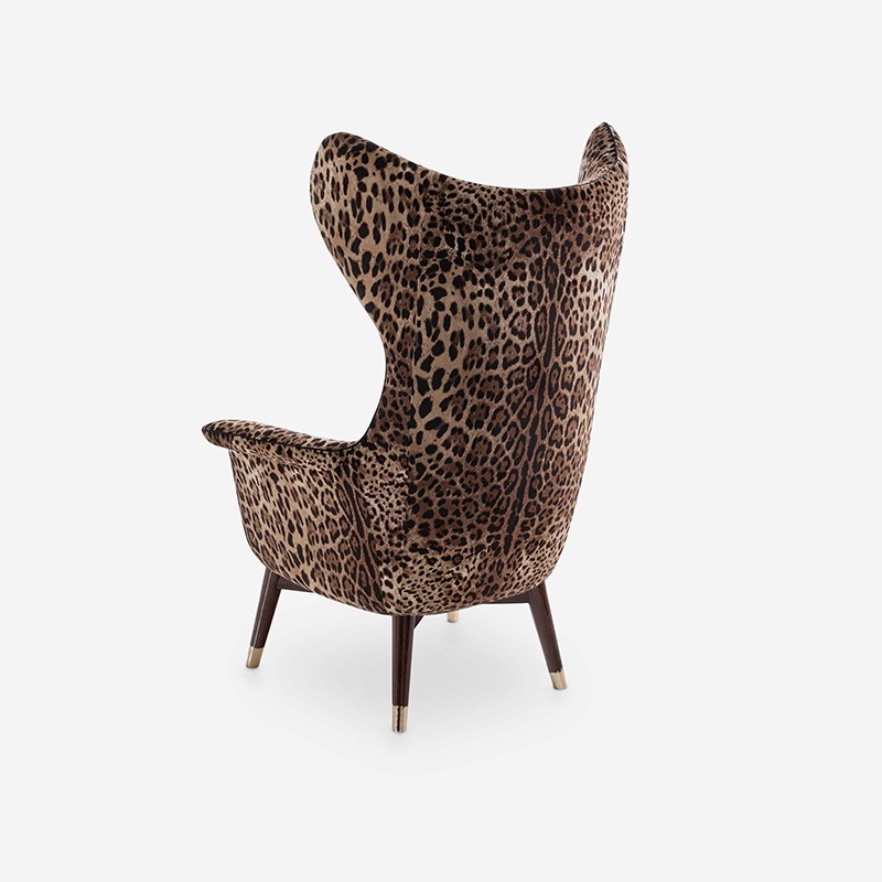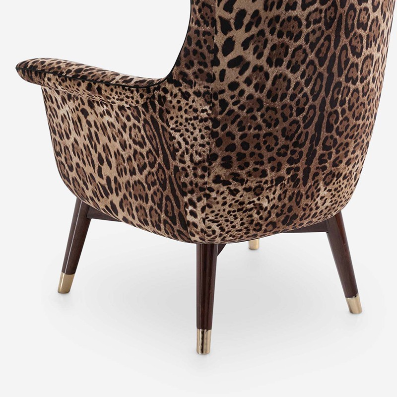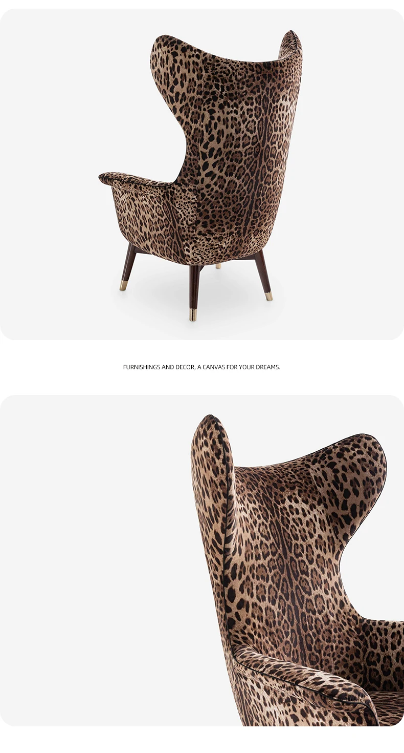 Italian Luxury Brand High Back Wing Chair with Leopard Fabric Stylish Minimalist Design Handmade for Home Living Room Furniture