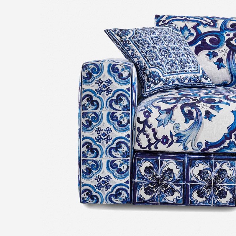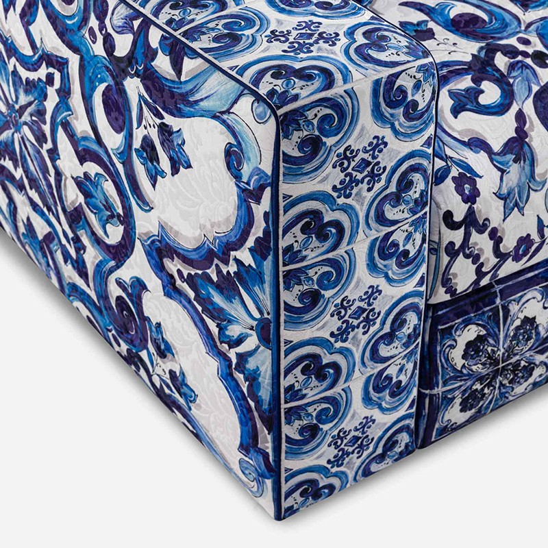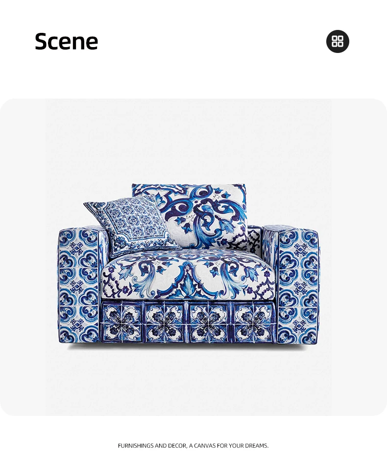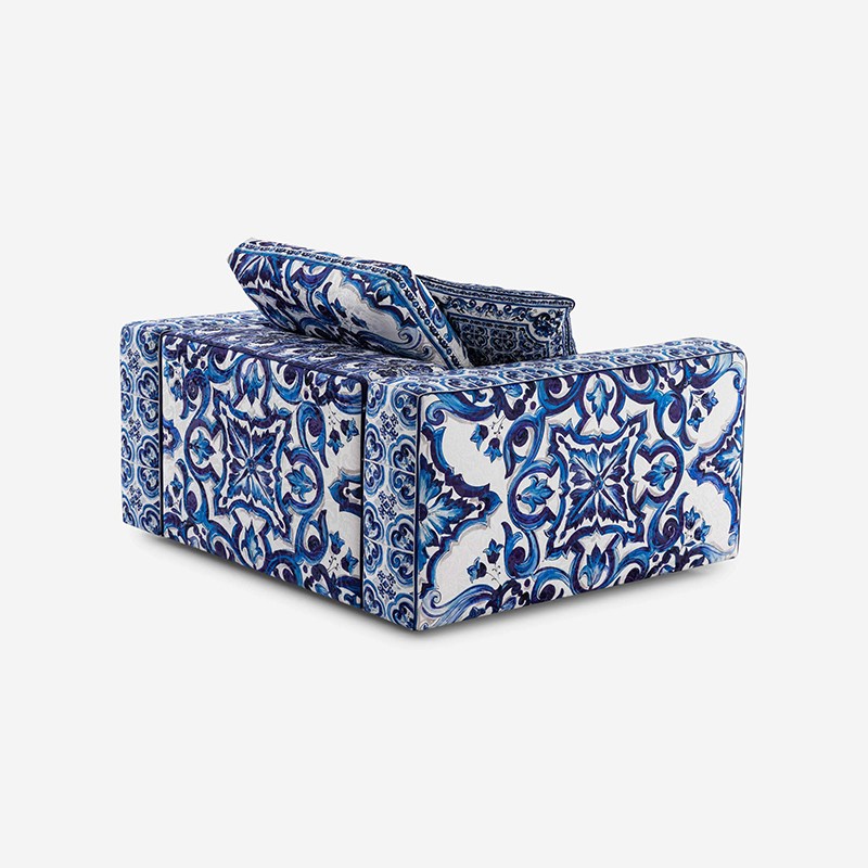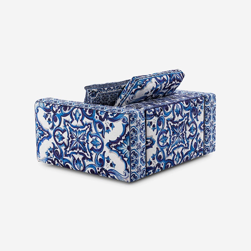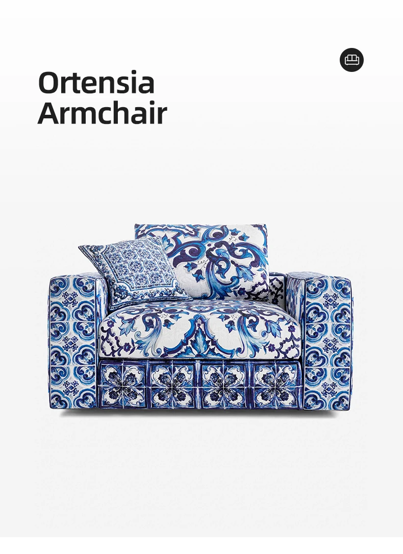 Italian Luxury Brand's Blue Flower Fabric Leisure Sofa Chair Handmade Soft Comfortable Minimalist for Bedroom, Apartment, Hotel