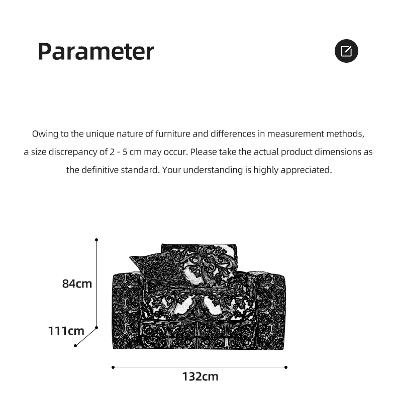 This piece of furniture is crafted with soft velvet, complemented by a sturdy solid - wood frame, combining both texture and quality. In terms of craftsmanship, it adopts the exquisite manual quilting process, paired with high - resilience sponge. This not only ensures a comfortable touch but also guarantees long - term durability. Whether it's the Italian light - luxury style that pursues understated luxury, the modern minimalist style that emphasizes simplicity and practicality, or the Italian decoration style full of artistic charm, it can be perfectly integrated. It adds a unique charm to your home space and creates a comfortable and cozy living environment.