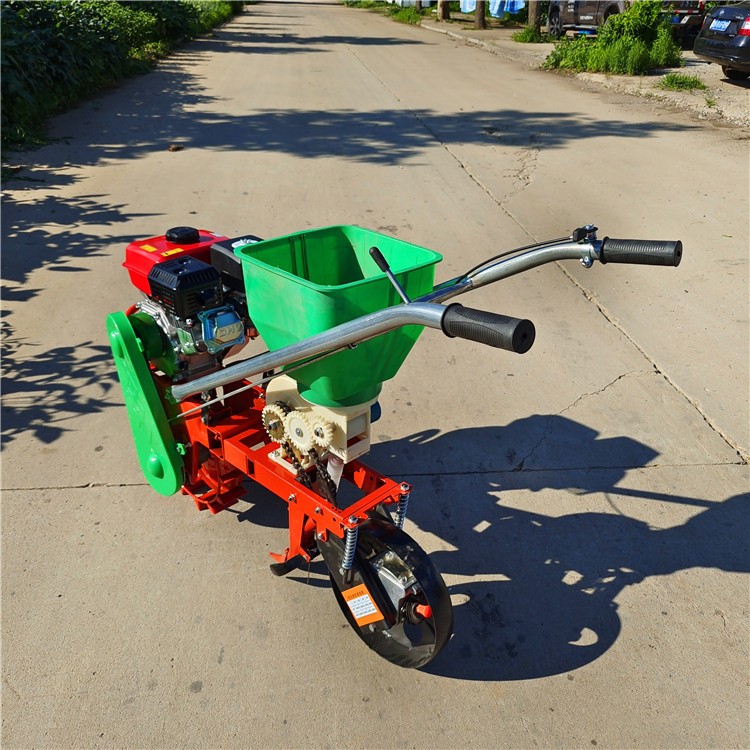 This hand push gaoline corn planter seeder cum fertilizer, it's the newest planting machine that can plant corn, wheat,soybean,peanut, etc; it is suitable for the fertilizing and seeding in the corn fields in the plain and hilly areas.The seeding capacity, seeding row space and the working width is adjustable.
