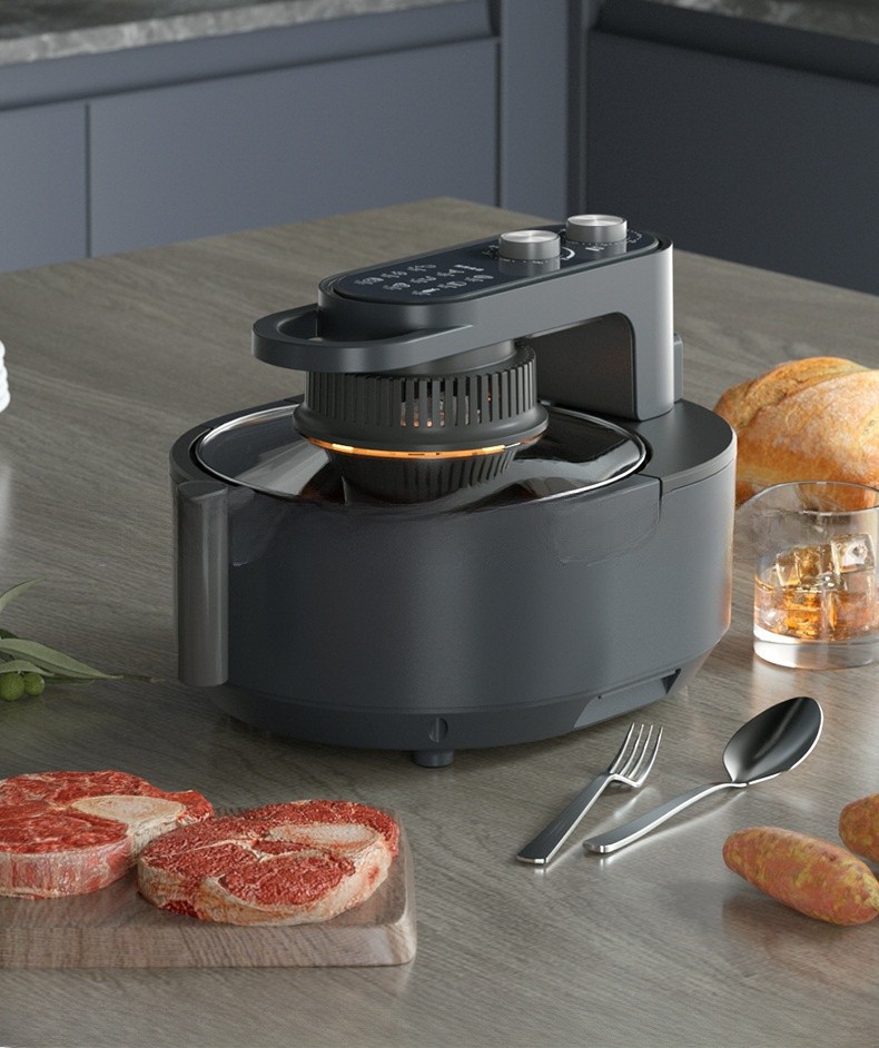 Modern Square Stainless Steel Electric Air Fryer Household Visual Timed Temperature Adjustable Digital Control
