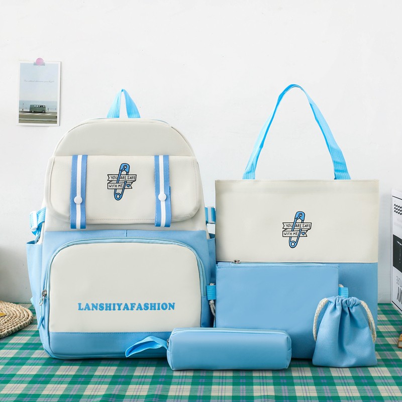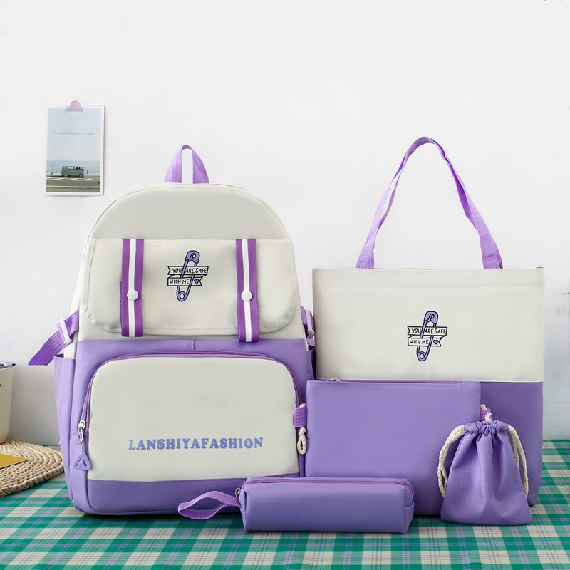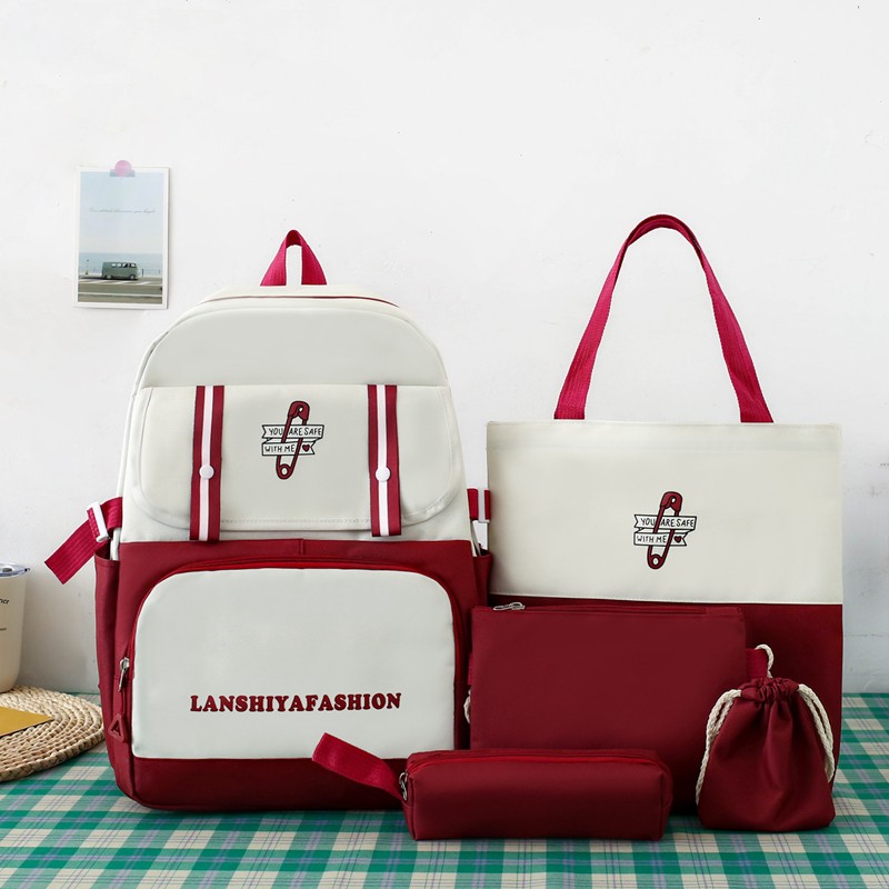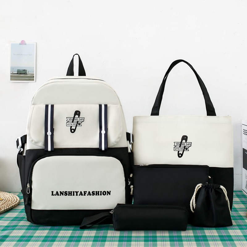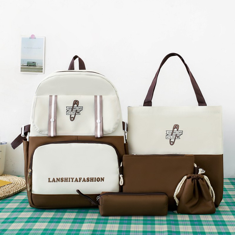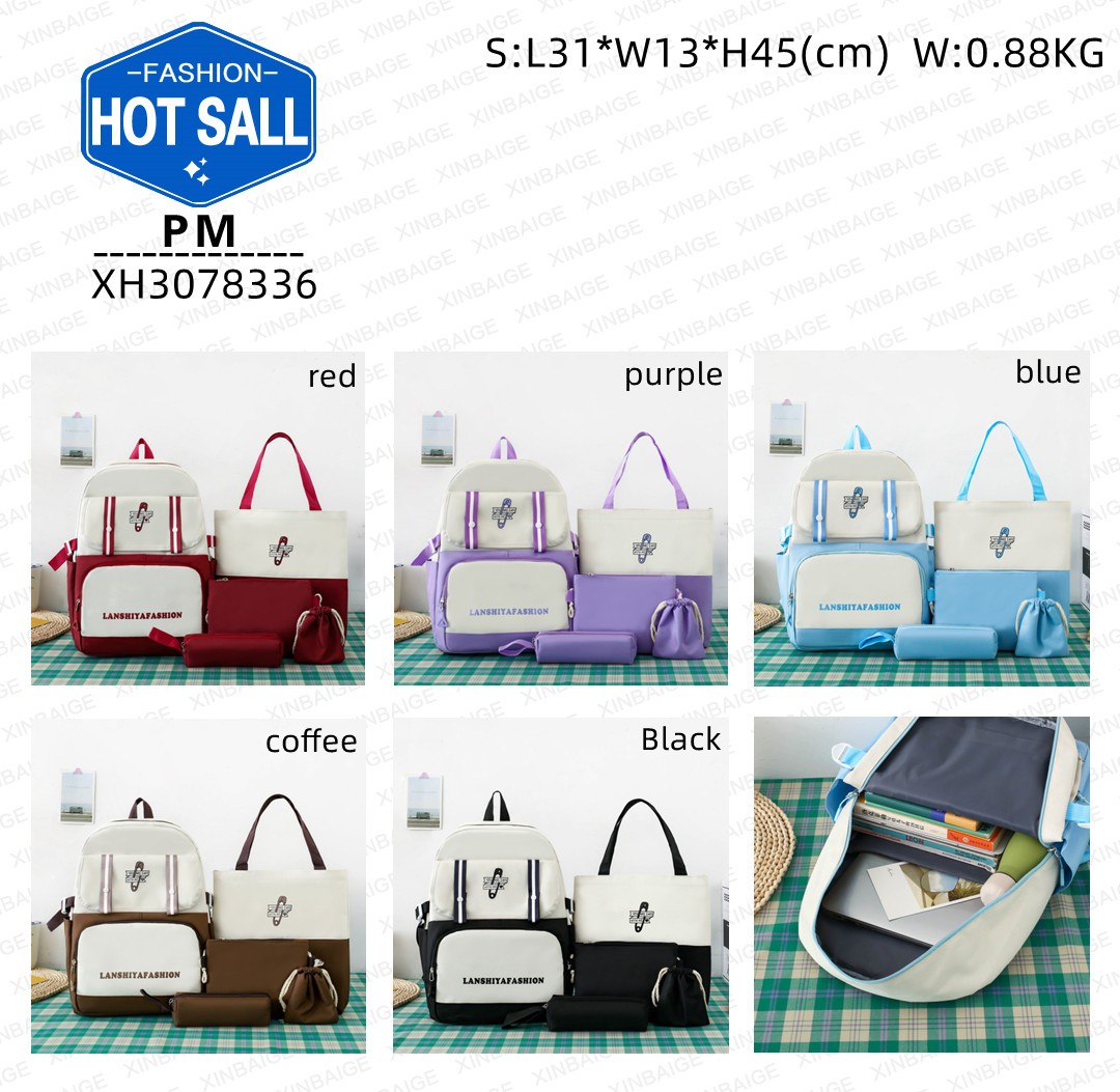 New Bapa Korean Leisure Simple Rge Capacity Student Schoolbag Travel Bapa Five-Piece Set Wholesale 3078