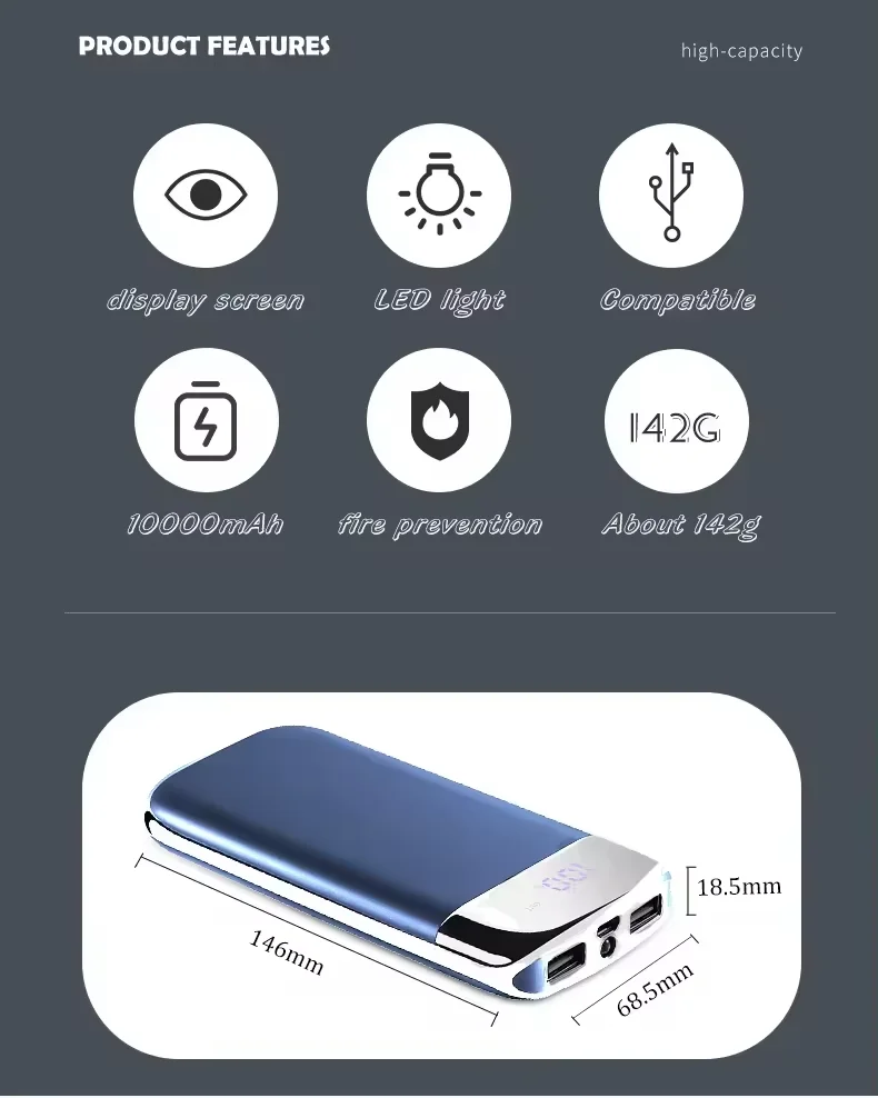 Real Portable Digital Display Slim Power Bank With Flash Light 10000mah Portable Charger External Battery 20000 Mah Power Bank