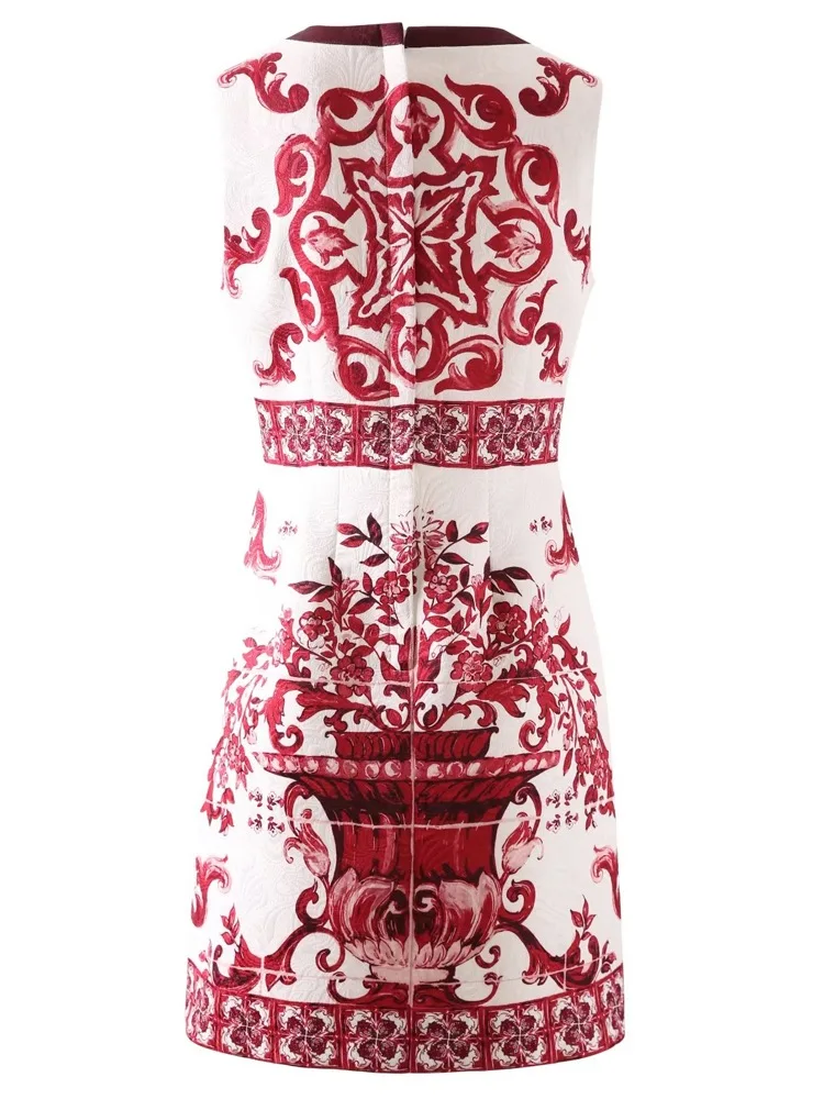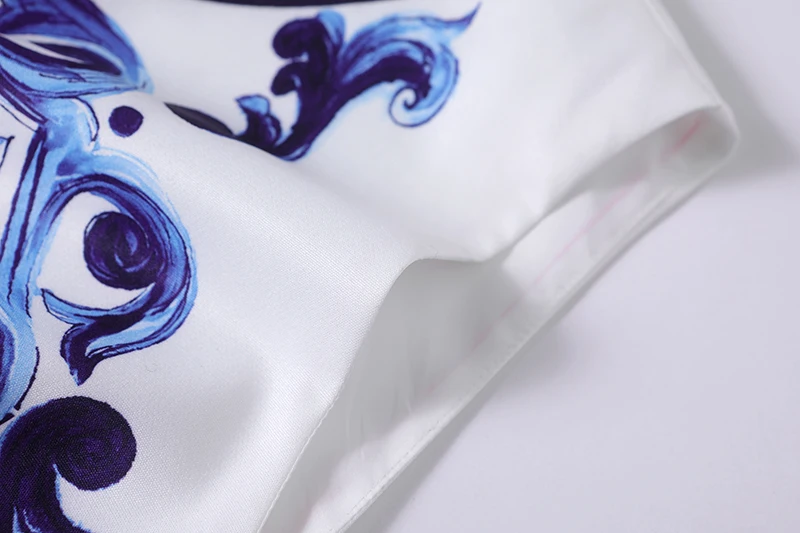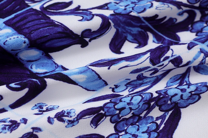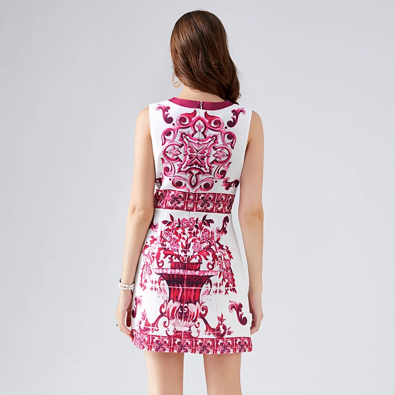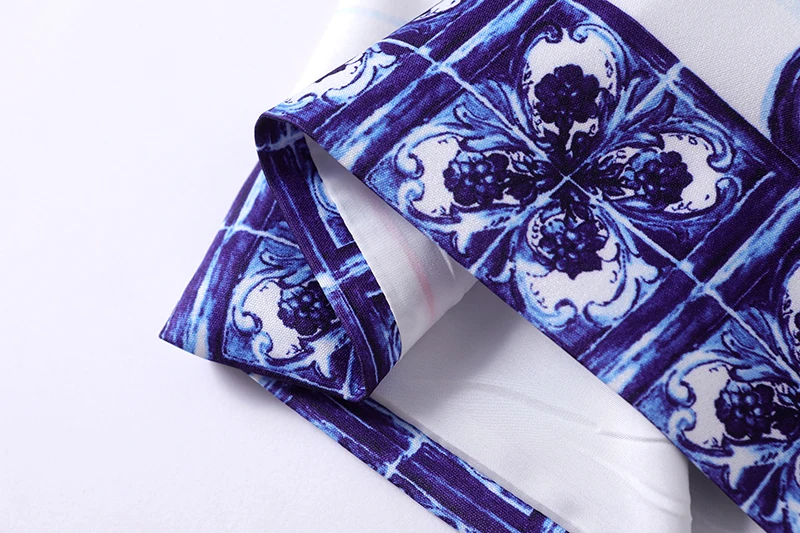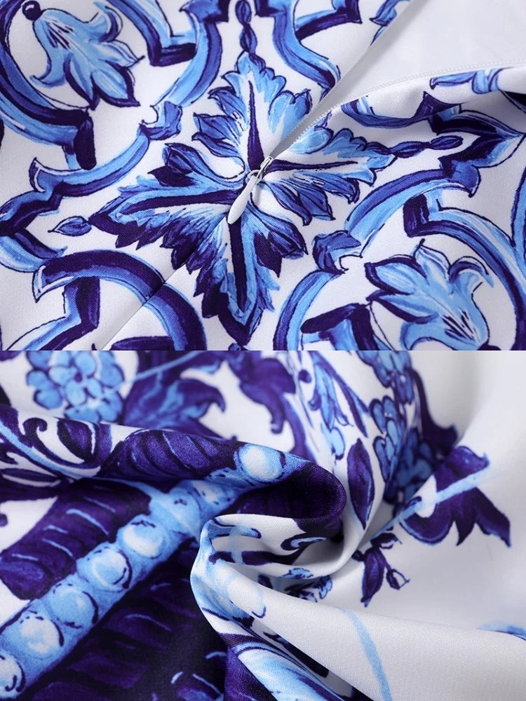 Summer Golden Sundress Holiday Floral Short Dress Women's Yellow Blue And White Porcelain Print Holiday Tank Mini Vestidos