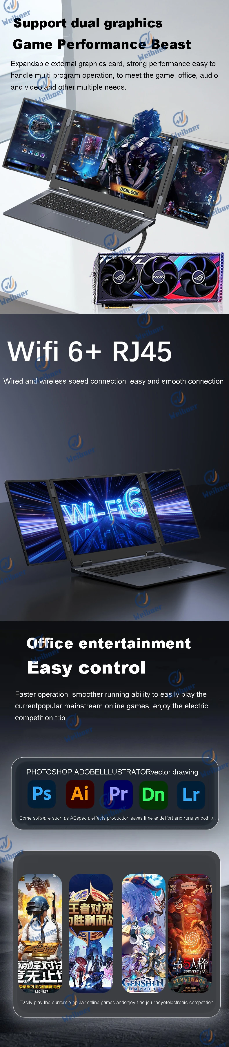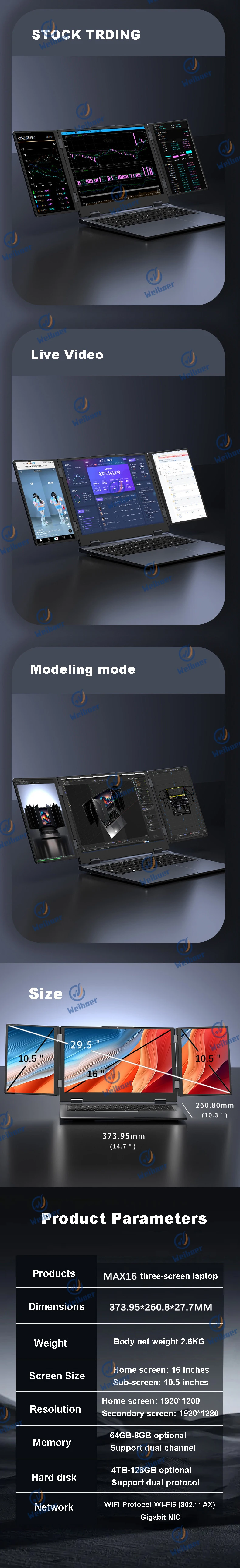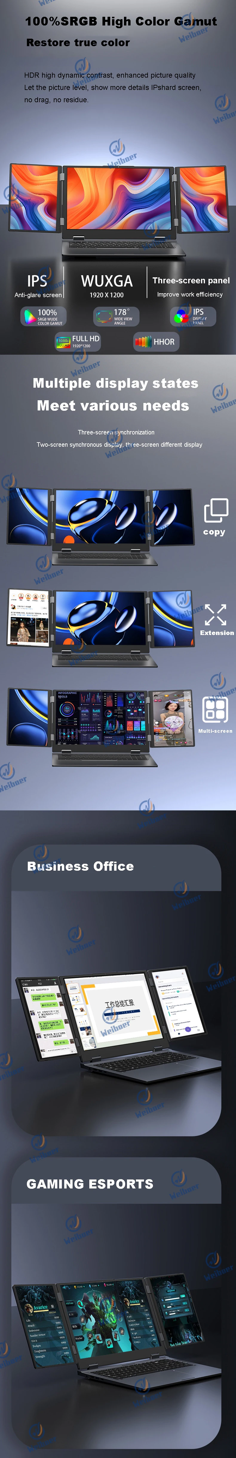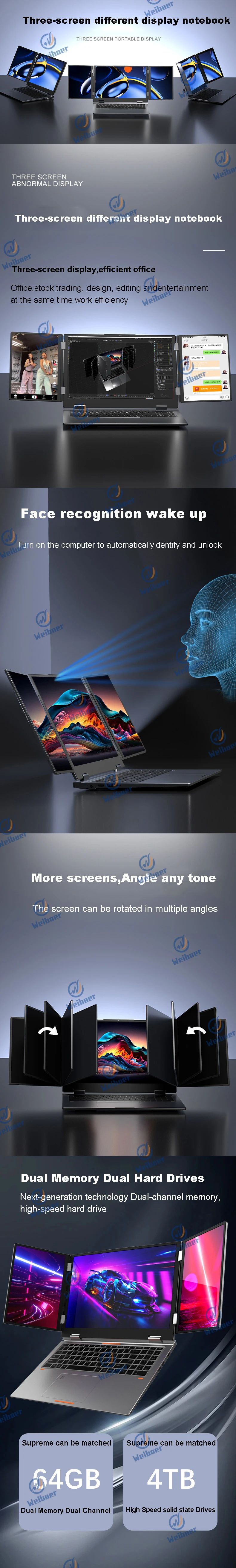Triple Monitor 16 Inch Dual 10.5 Inch Three Triple Extended Screen Computer WIFI 6 RJ45 Intel I7 12th Gen Gaming Laptop