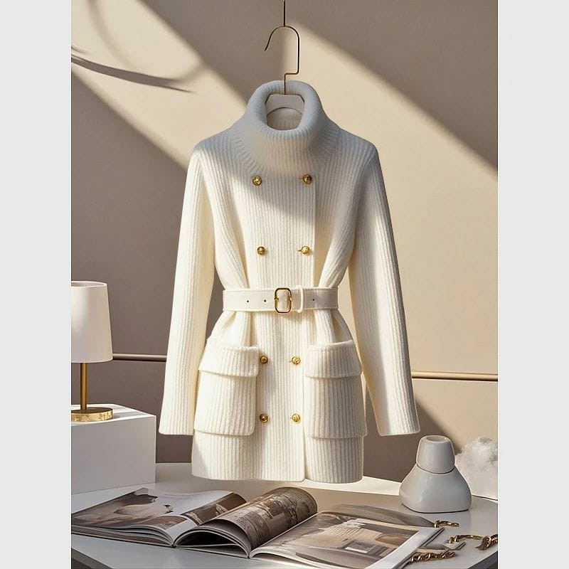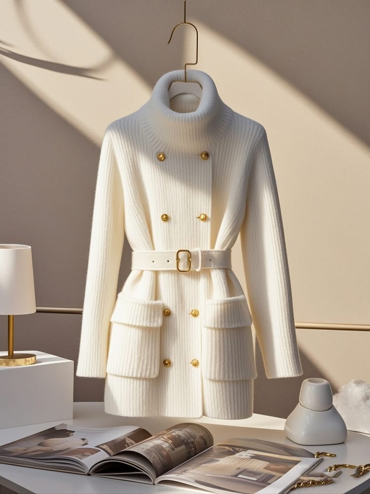 • Texture close-ups: Fine knit, soft tweed-like panels, and a hint of sheen on the yarn to evoke luxury.