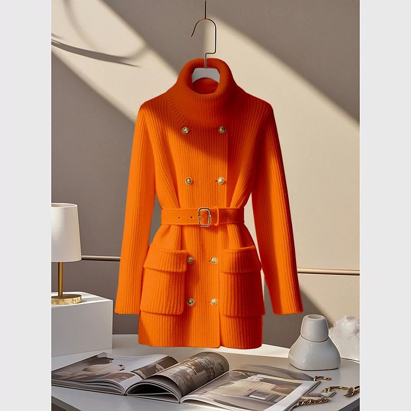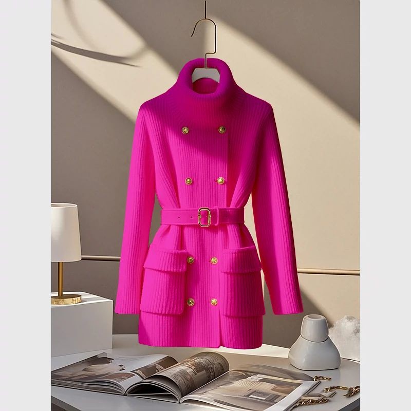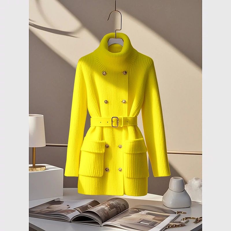 Unique and stylish waist-clinchingTop with lazy High-end High Quality Chanel-style Fashion knit-sweater Jacket
