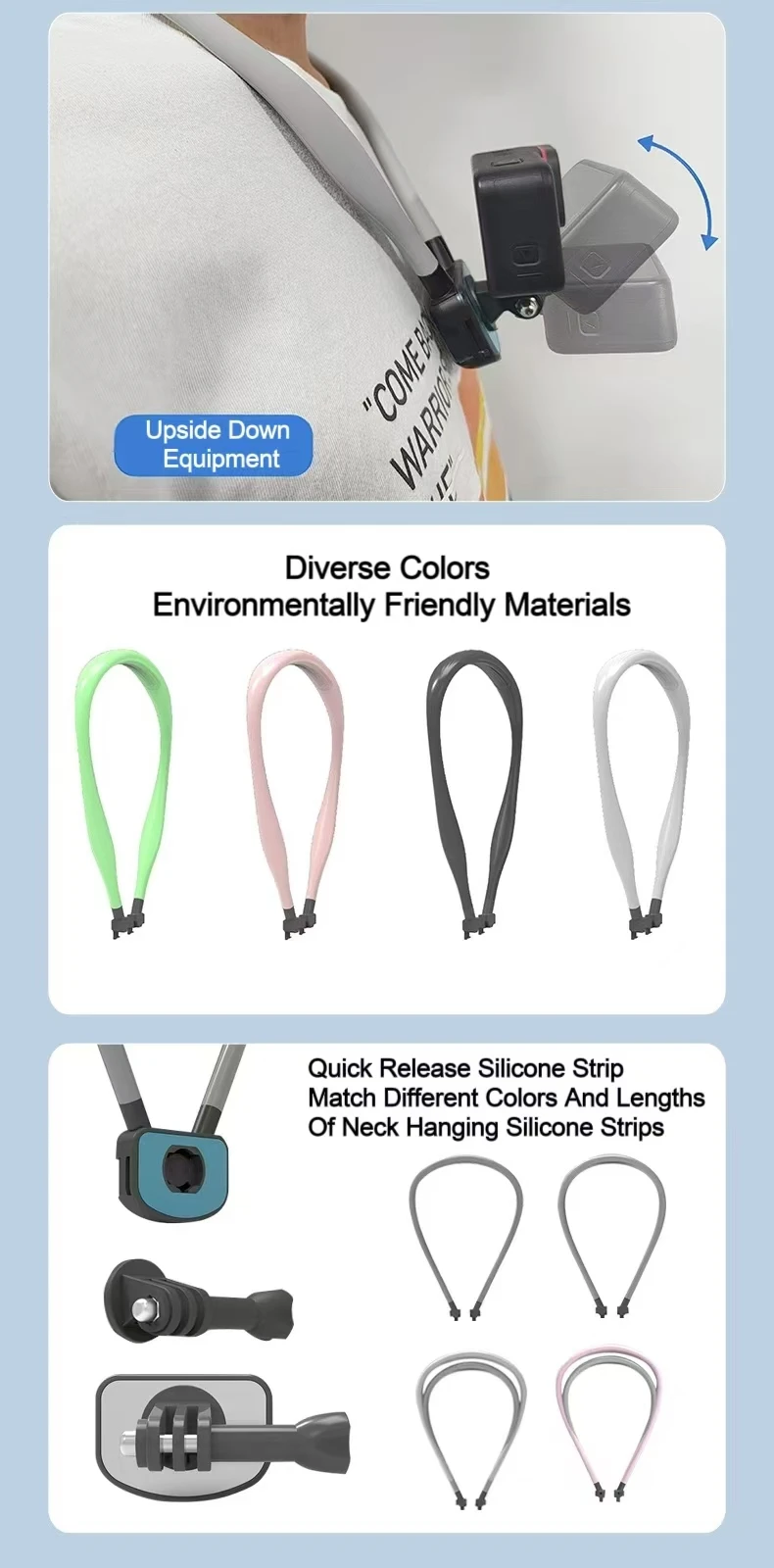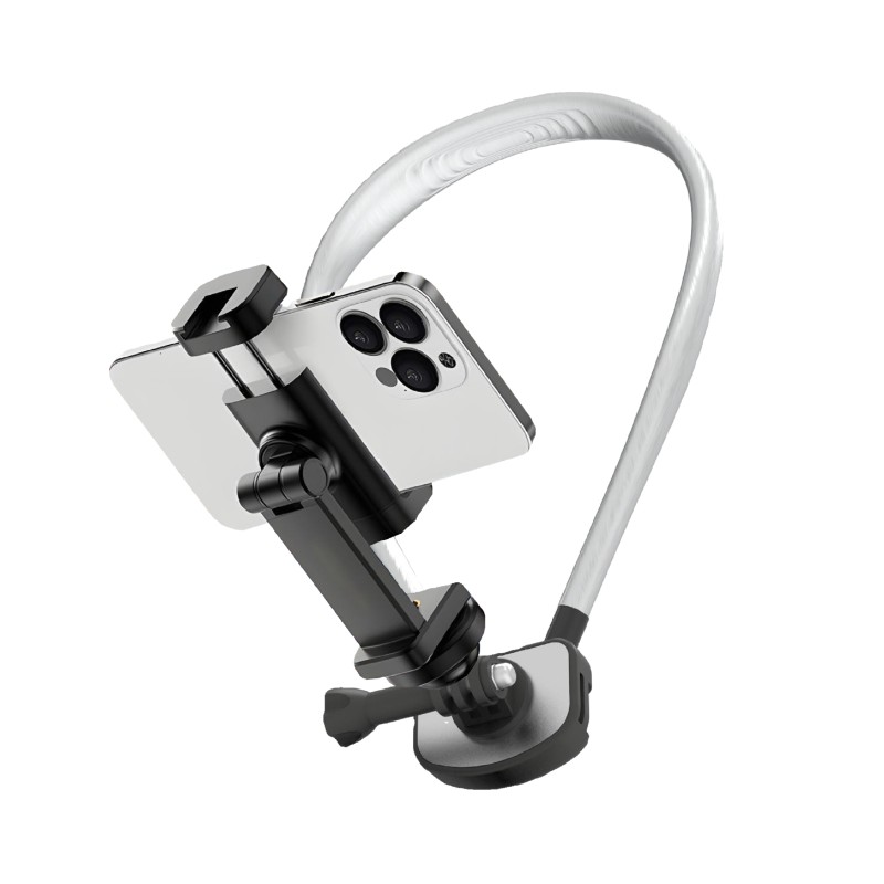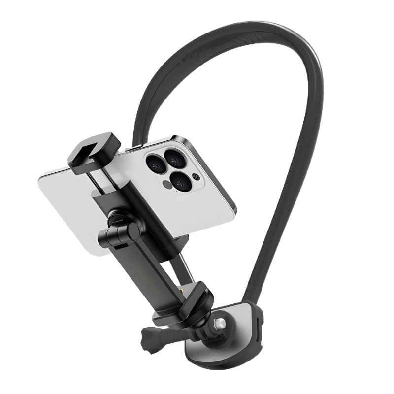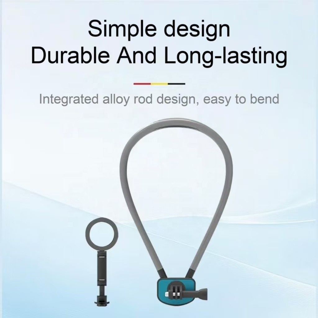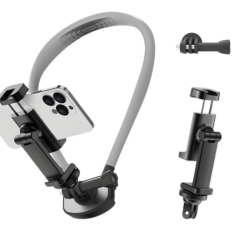 This neck wear phone holder, made of Metal+ABS+Silicone, supports universal sports cameras and mobile phones. It is adjustable, portable, flexible, and waterproof, ideal for outdoor live streaming, cycling, running, and car travel. Certified with EPR_Germany_Packing and EPR_France_Packing, it ensures compliance with packaging regulations, offering market access advantages.