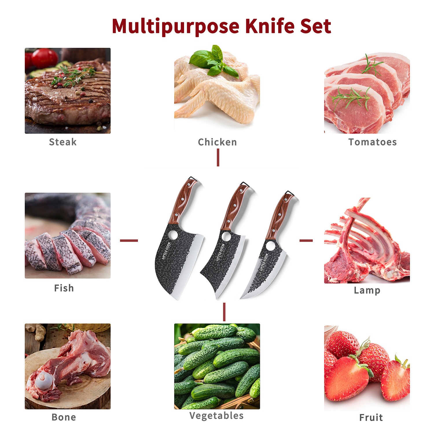 Wholesale Stainless Steel Kitchen Butcher Viking Serbian Chef Knife Set with Wooden Handle